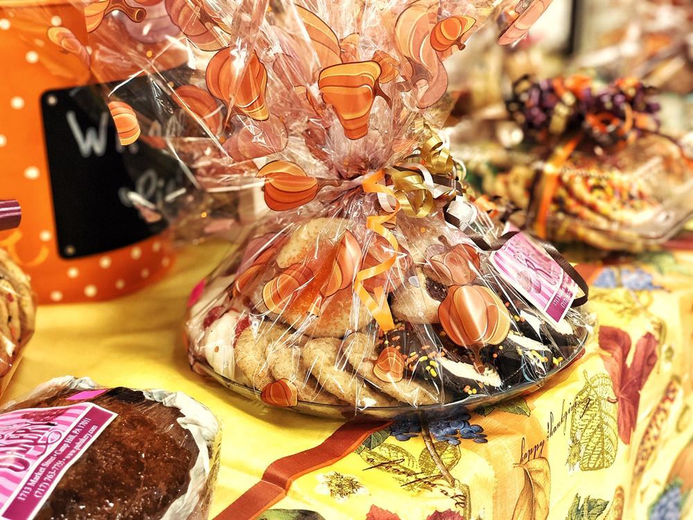 A 2.5 LB assortment of our signature butter tea cookies, arranged on a ruffled tray and wrapped with cellophane, ribbons, and a gift tag. Cellophane wrap will vary based on the current season.