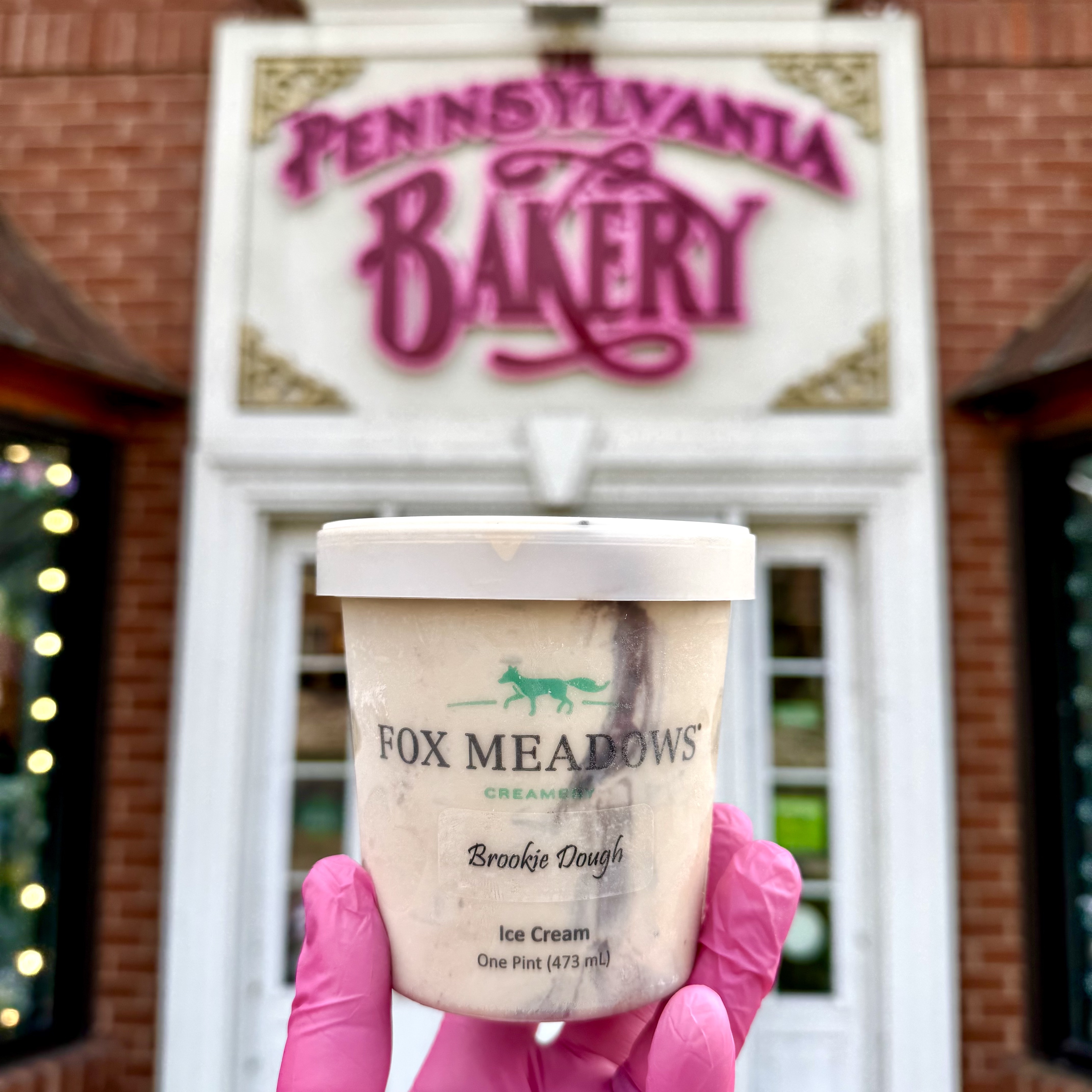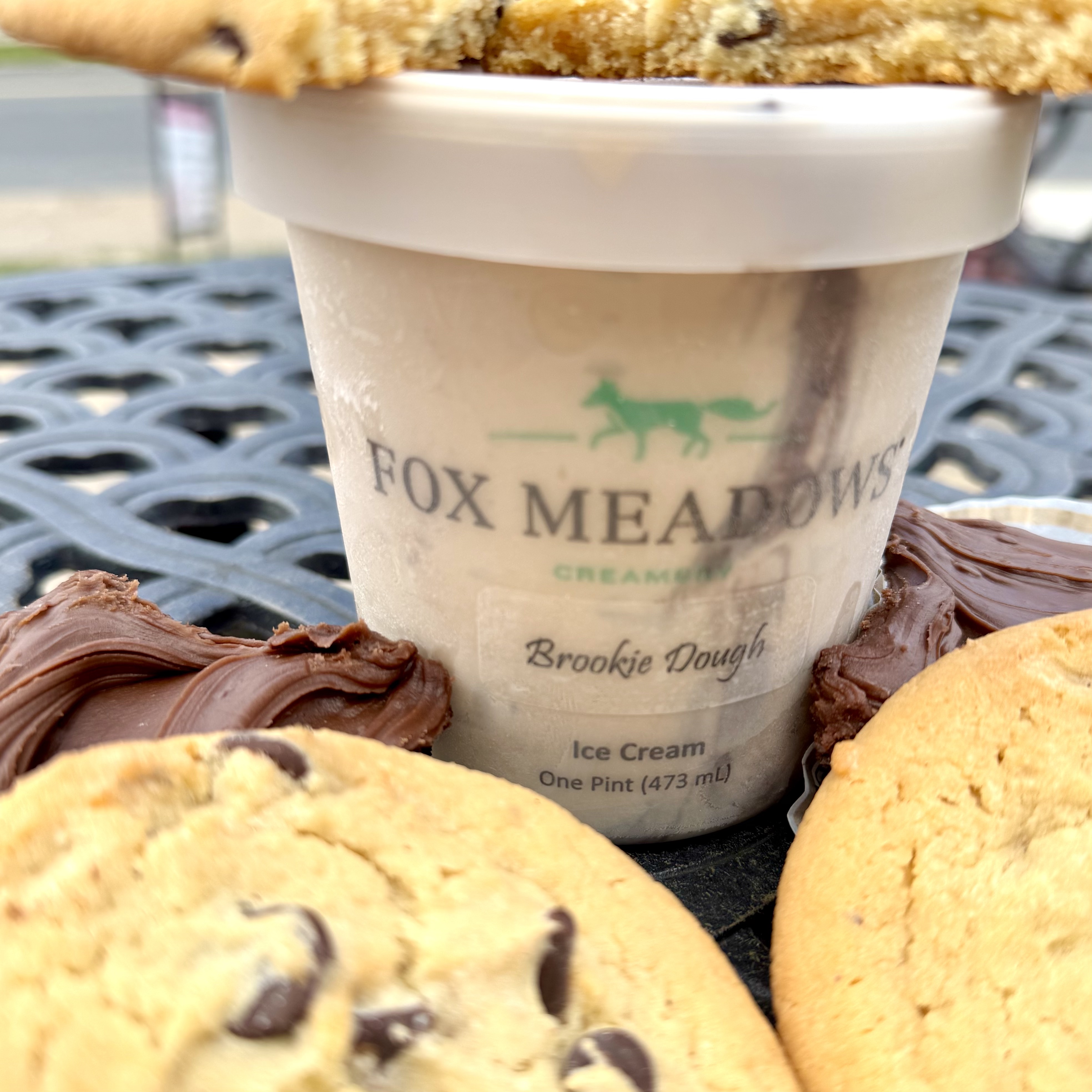Fox Meadows vanilla ice cream with a fudge swirl, & with brownie & cookie dough bits mixed in.