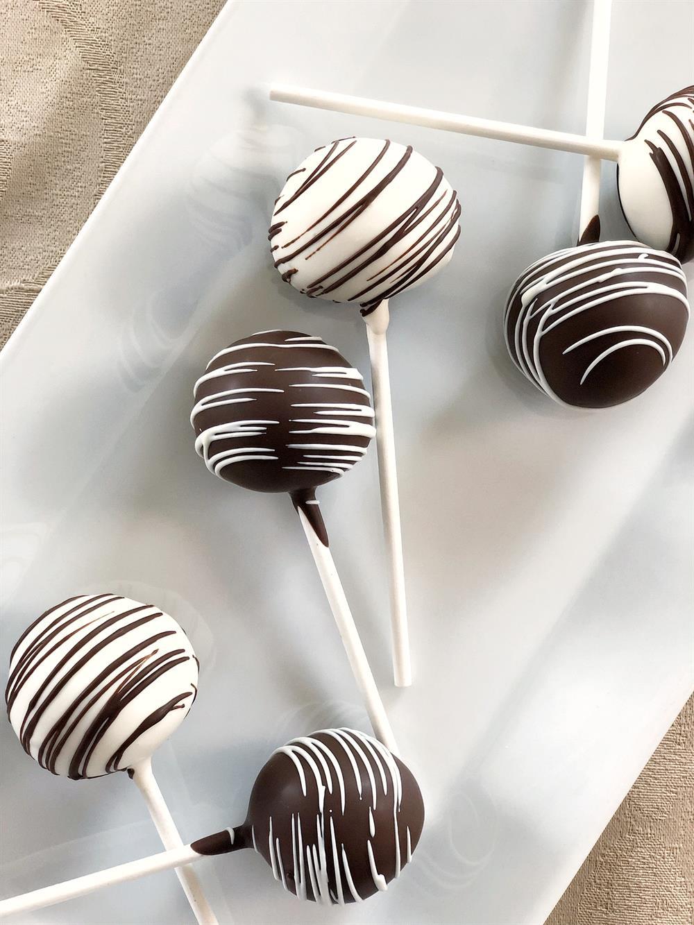 A combination of our moist cake and delicious icing coated in chocolate. Available in vanilla or chocolate cake and milk chocolate or white chocolate coating and garnished with a chocolate drizzle.