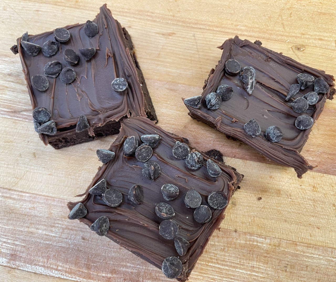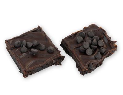 Rich fudgy brownie topped with milk chocolate chips baked throughout and on top.