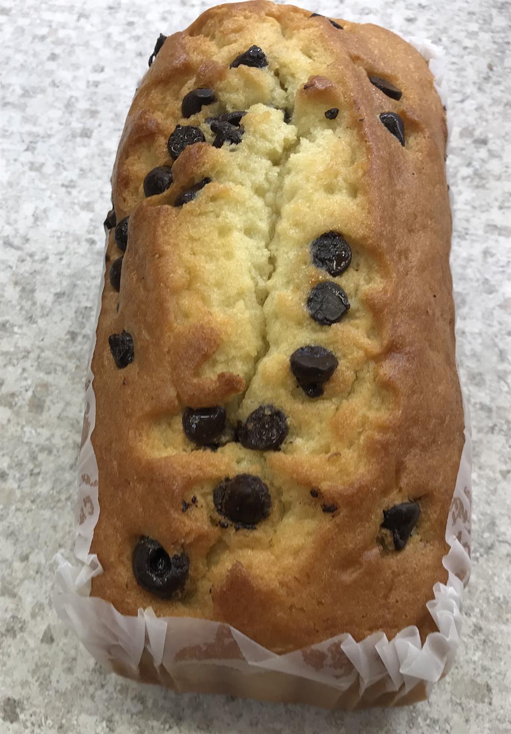A sweet vanilla moist quick bread with chocolate chips baked throughout. To die for!