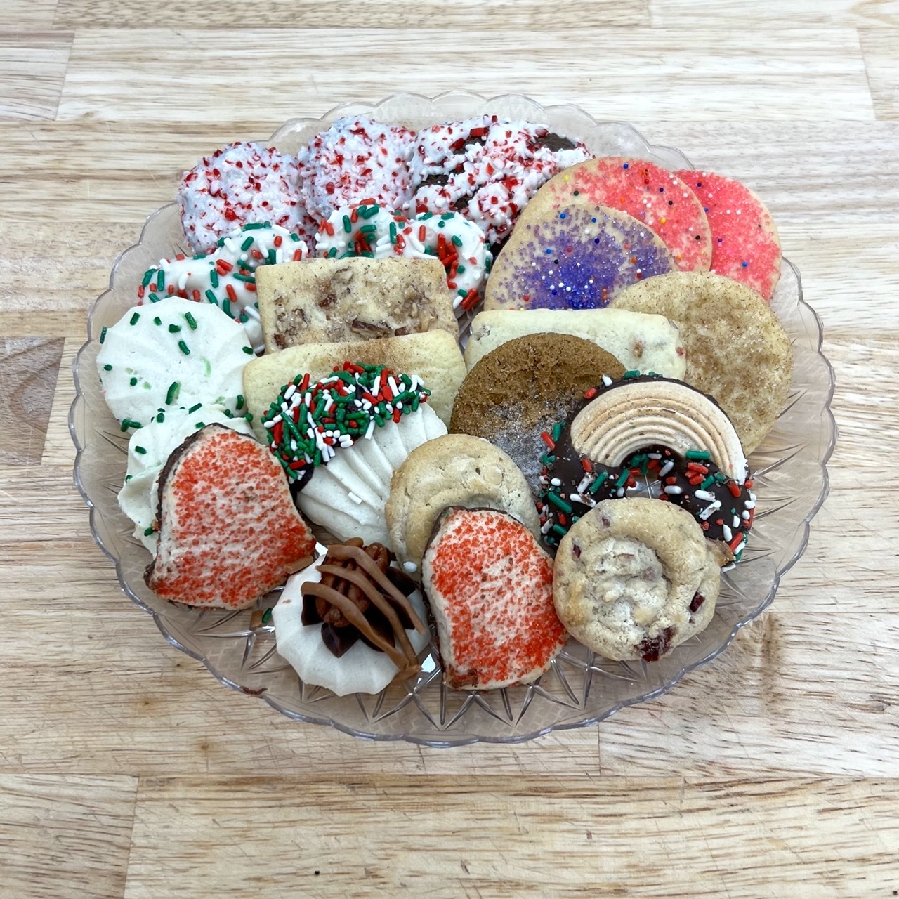 A pound of our assorted Christmas Cookies. A pound is typically around 36+ of our small Christmas tea cookies, in a pink bakery box.