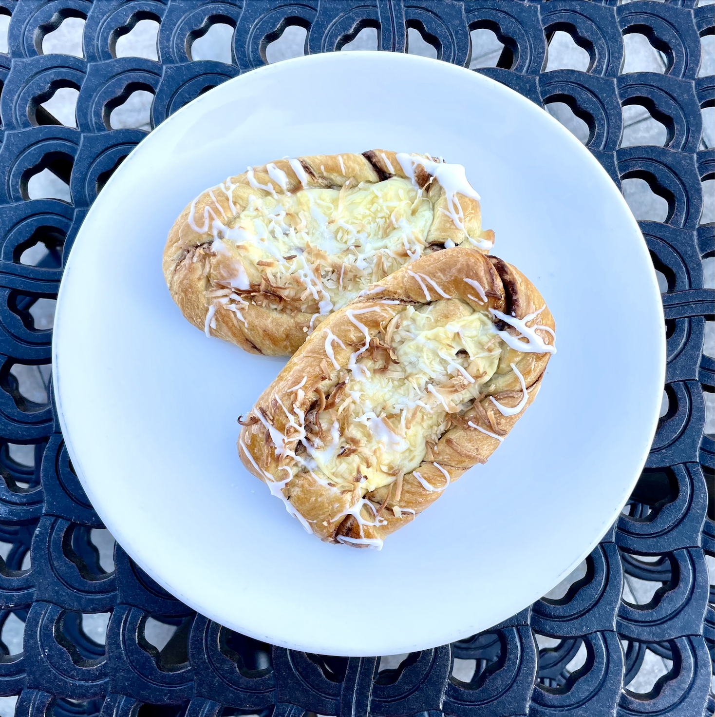 Danish with custard filling and topped with toasted coconut.