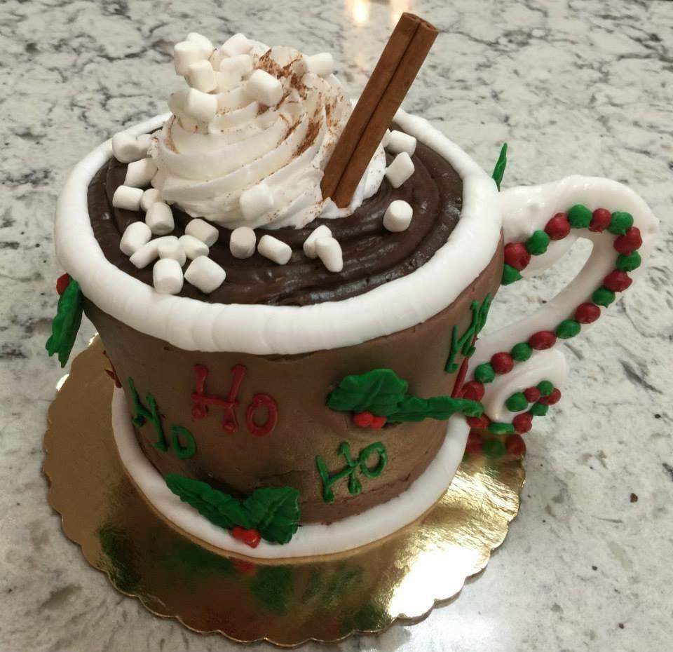 A gift cake (standard flavors available: yellow, chocolate, marble, or 1/2 and 1/2 (layer of each)), iced in buttercream and decorated to look like coffee cup. Please indicate cake flavor when ordering.