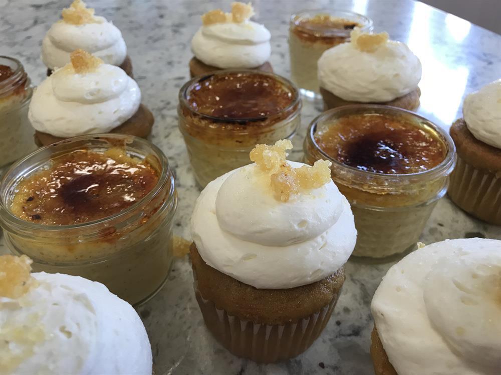 Our delicious yellow cake, filled with caramel custard, iced with French buttercream, and garnished with caramelized sugar.