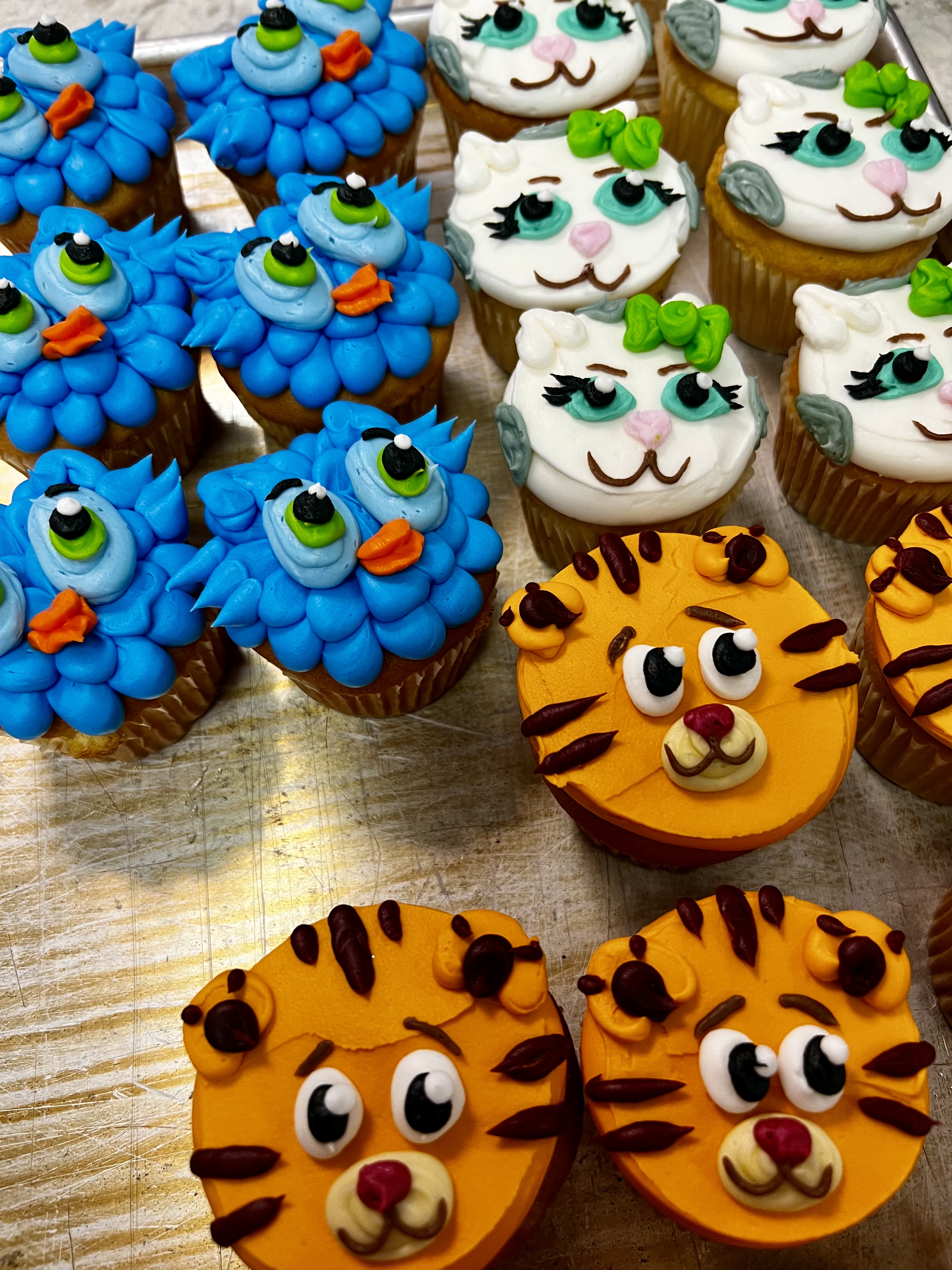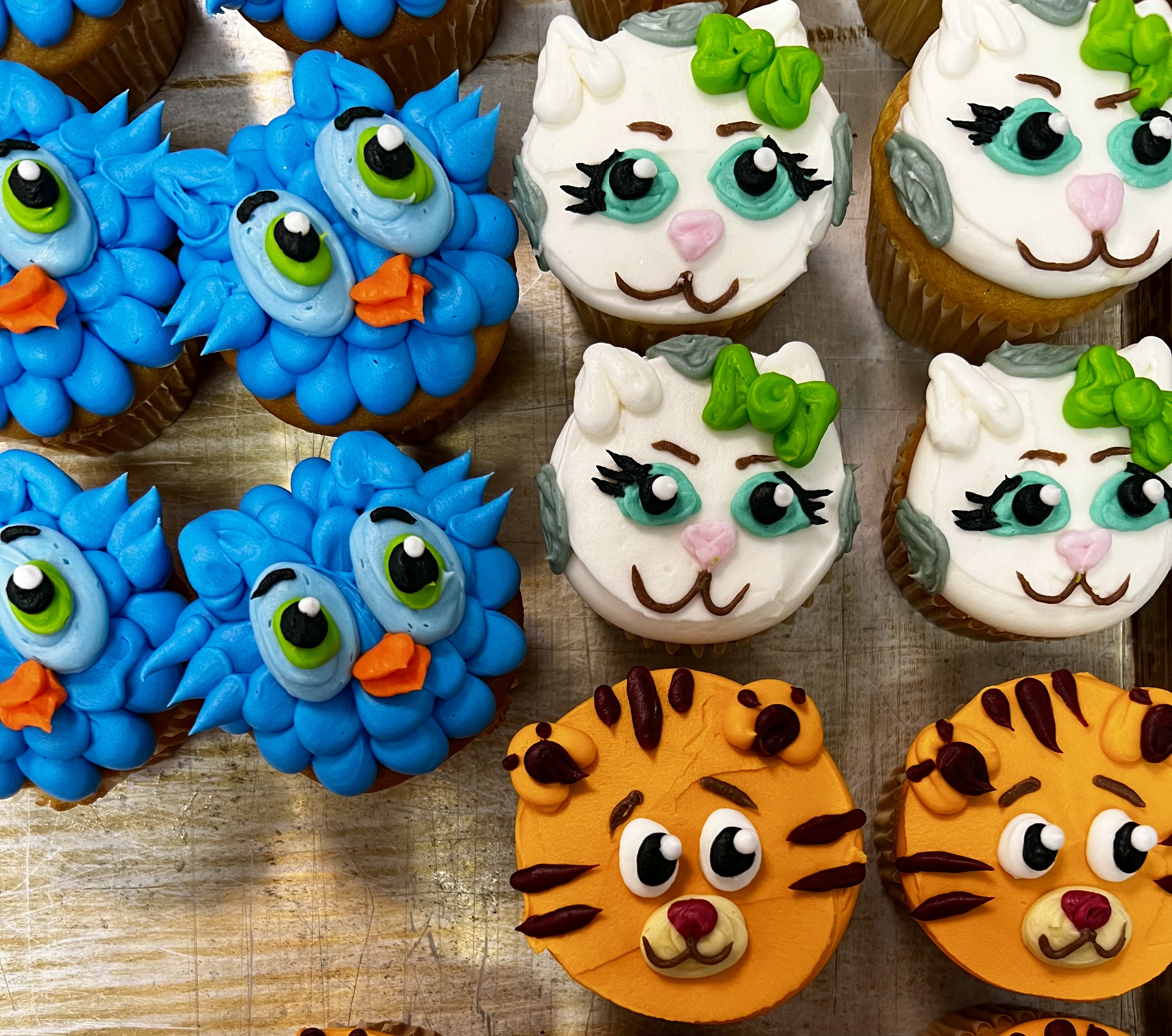 Available in yellow or chocolate cake. All decorations in buttercream. Variety of Daniel Tiger characters.