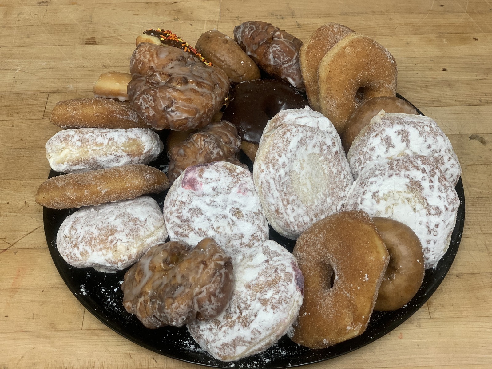 An assortment of 2 dozen of our homemade donuts, all served on a catering tray. Perfect for your breakfast gatherings!
