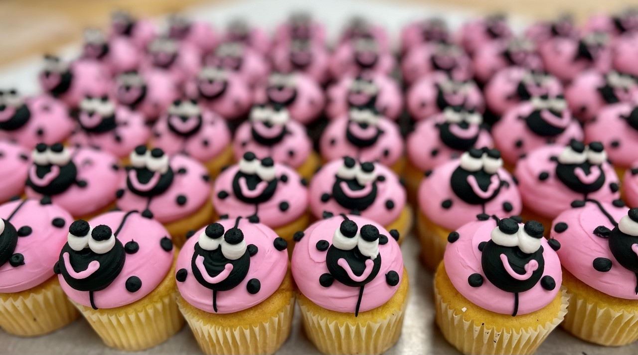 A dozen Valentine's decorated cupcakes. Available chocolate or yellow cupcakes with buttercream icing and decorations. Please specify flavor in comments. Default is half chocolate and half vanilla cake.