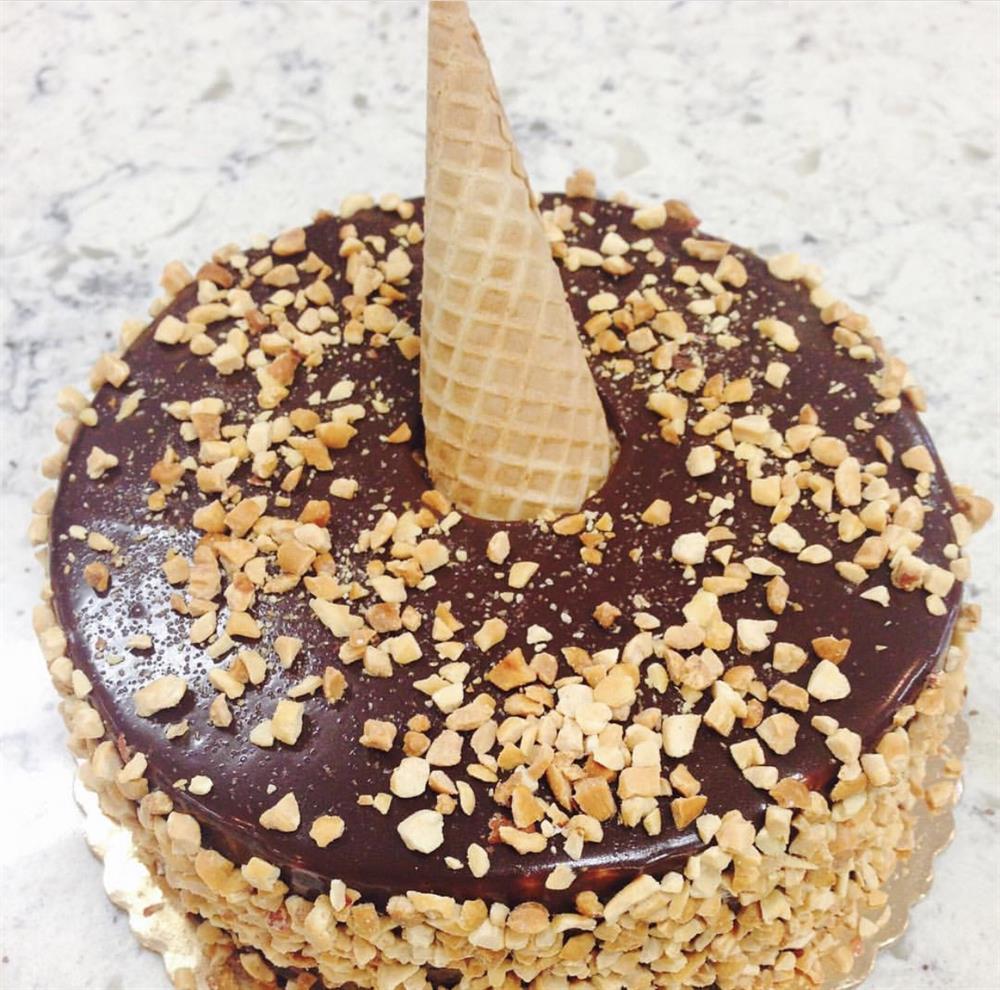 Layers of vanilla bean cake, filled and iced with a vanilla bean French buttercream, garnished with poured chocolate ganache, and finished off with chopped peanuts. An ode to one of our favorite ice cream treats! Serves 6-8.