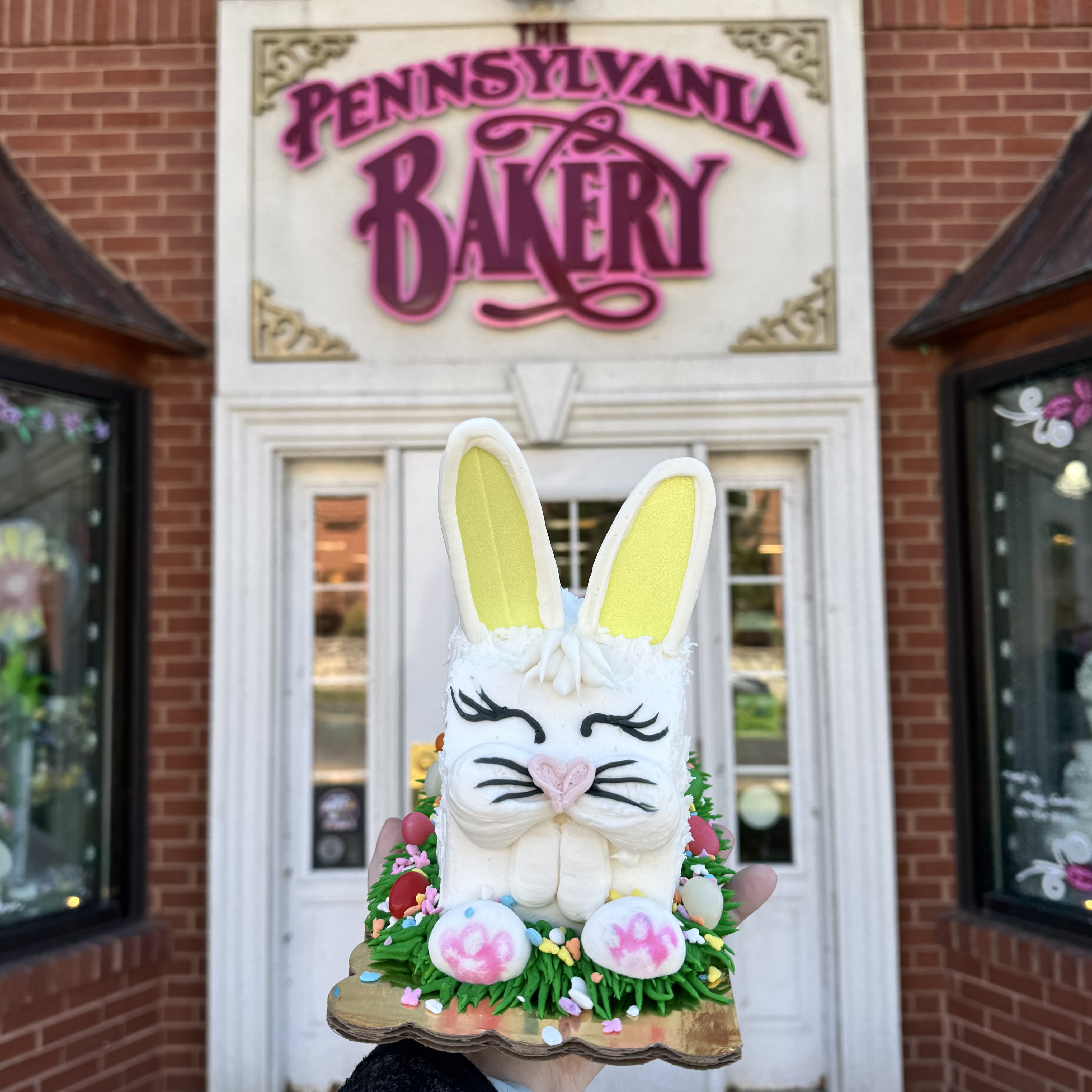 Our classic Easter Bunny Cake, iced in buttercream (without coconut) with a hand draw buttercream face. Facial expressions on bunny may vary!!