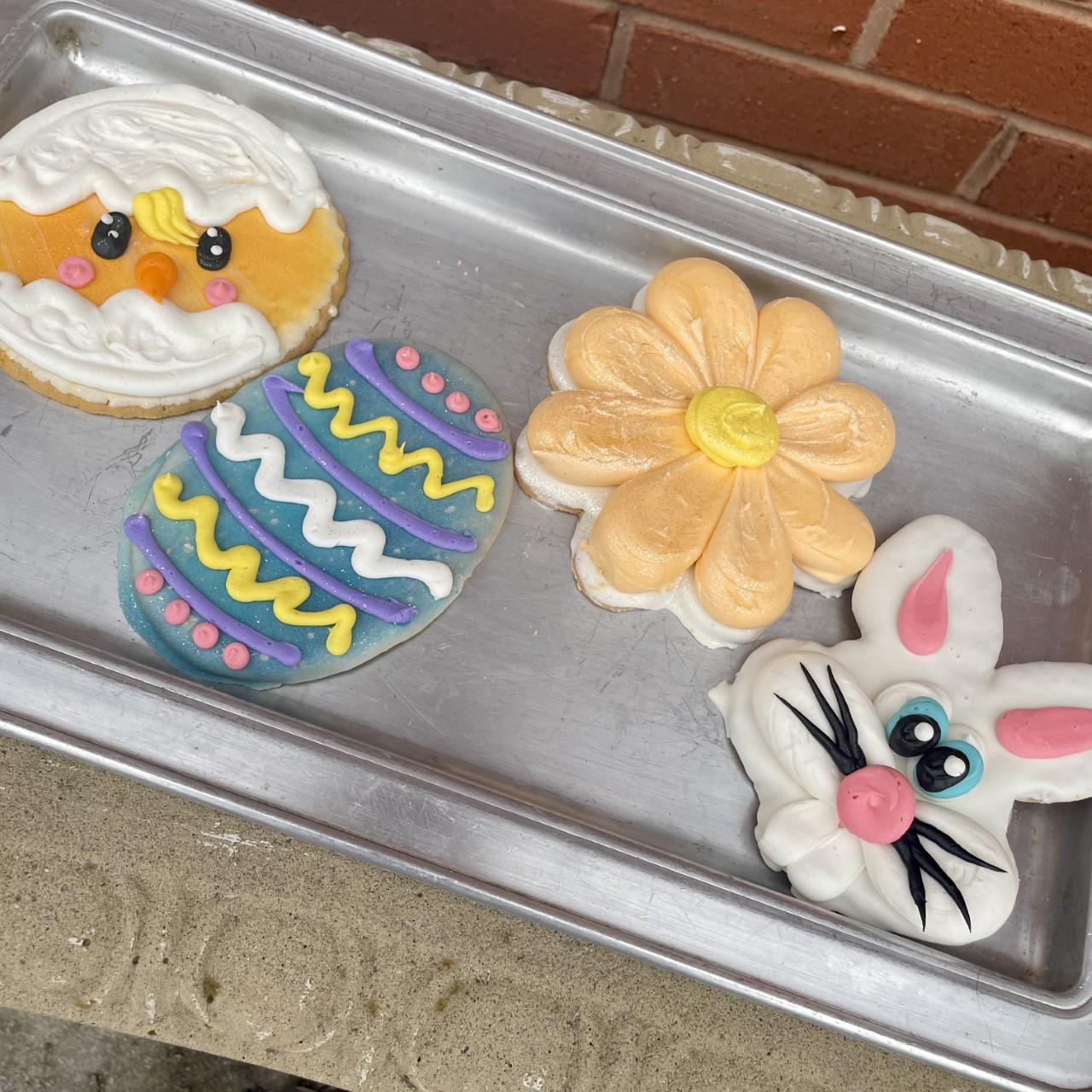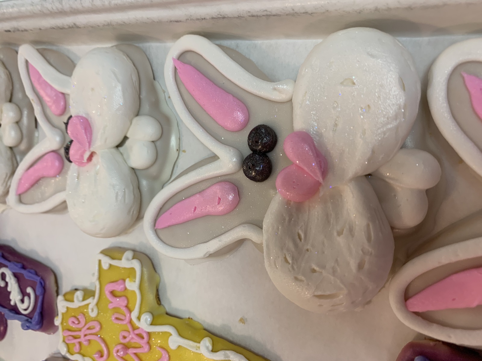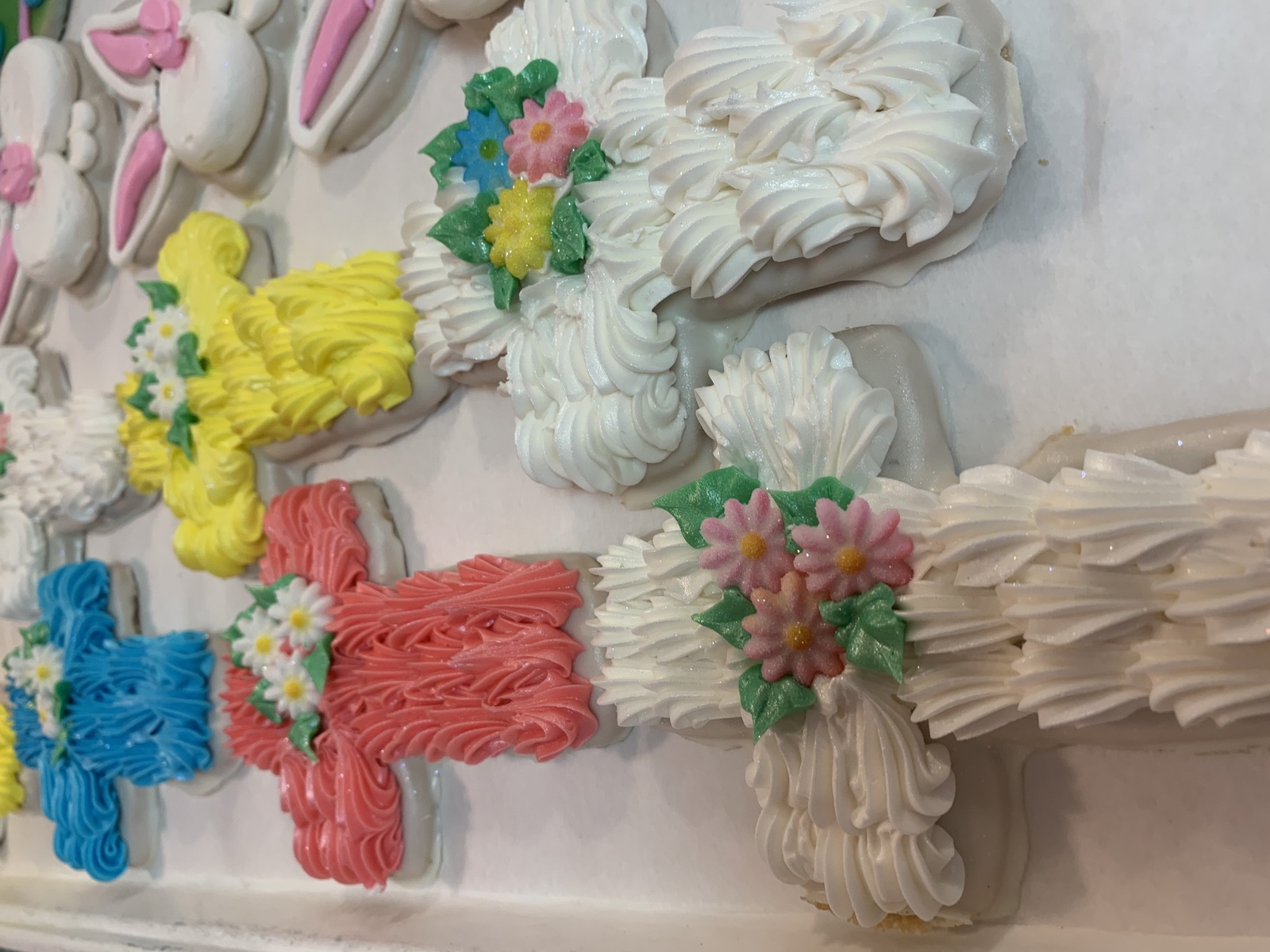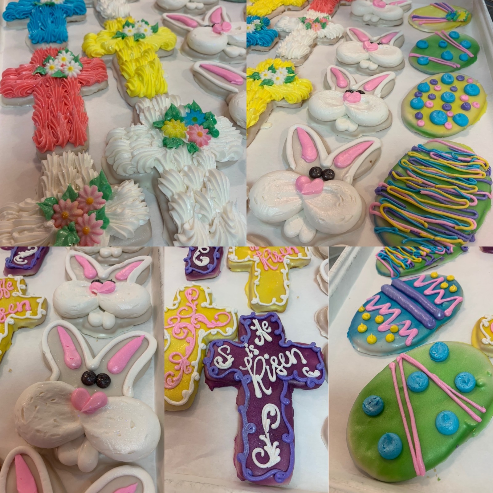 A 1/2 dozen of our assorted Easter Decorated Cookies. Our delicious Easter cookies, covered in white chocolate, and decorated with buttercream decorations.