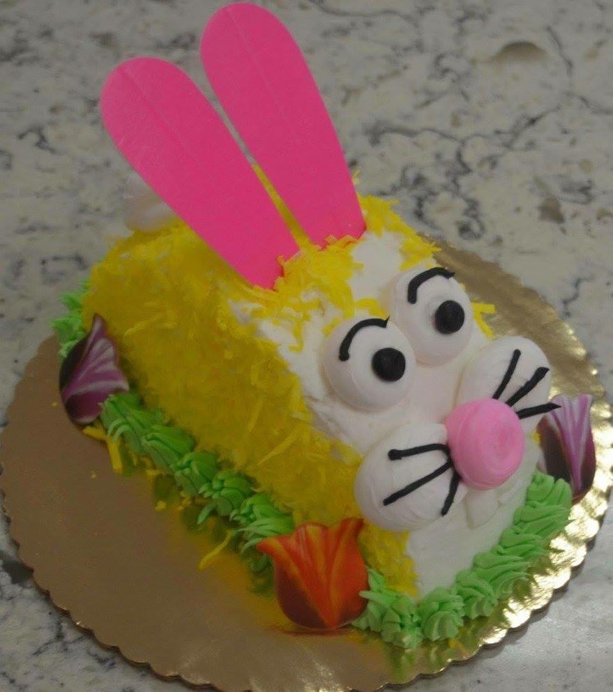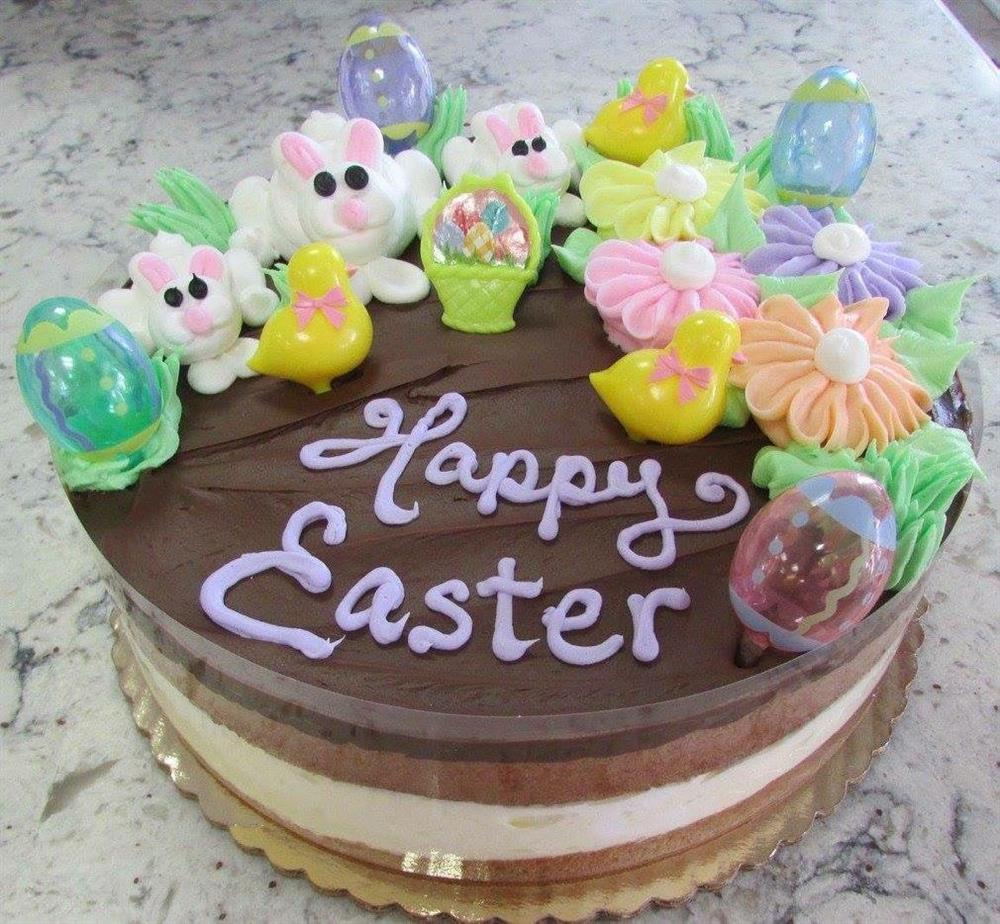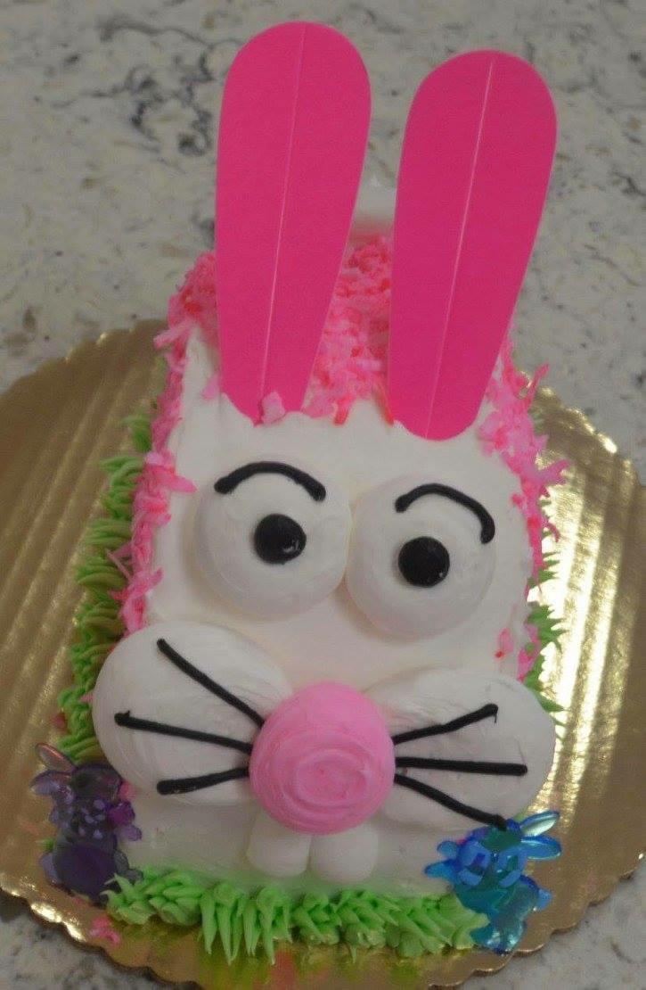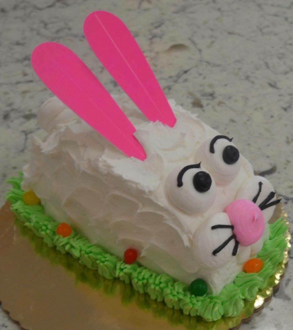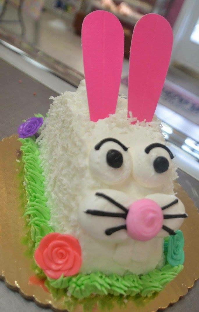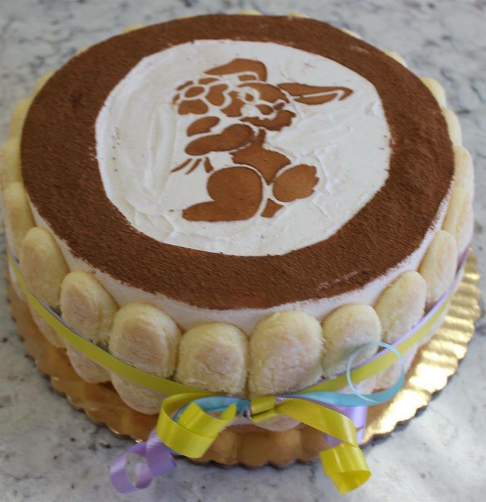 A 7 inch (serves 6-8) of our delectable Tiramisu. Layers of mocha cake, filled and iced with an espresso whipped cream, and garnished wit lady fingers and a cocoa powder bunny stencil on top.