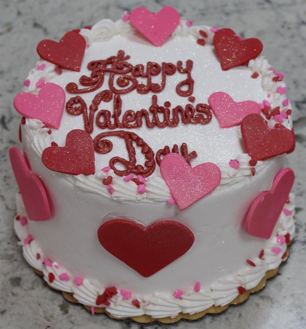 A 7 inch decorated cake, iced with buttercream icing, and decorated with hand-made fondant hearts. Please specify inscription and flavor (yellow, chocolate, marble, or 1/2 and 1/2 - layer of each) when ordering. Serves 6-8.