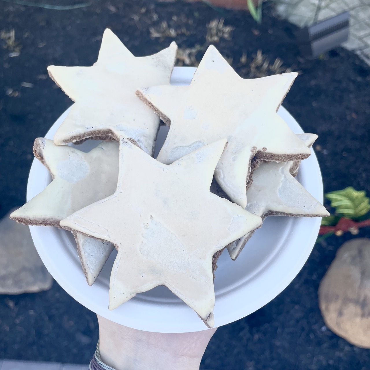Our German Cinnamon Stars (German - Zimtsterne) are a made-from-scratch and gluten free cinnamon spice cookie. The quintessential Christmas cookie - cris, cinnamon almond cookies cut into stars and topped with a meringue-like icing. Serve with mulled wine or hot chocolate.