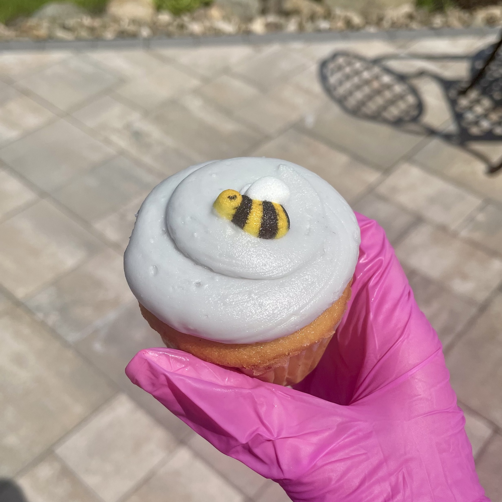 A honey cake, topped with a lavender flavored French buttercream, & finished off with a little sugar bee.