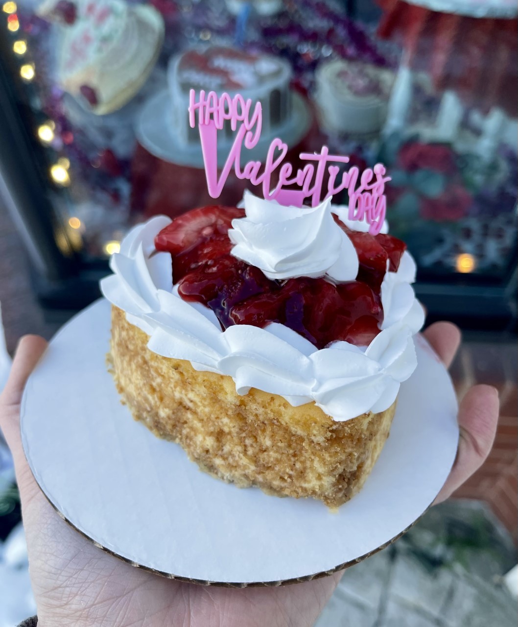 Individual heart shaped cheesecakes - topped with strawberry filling or cherry filling.
