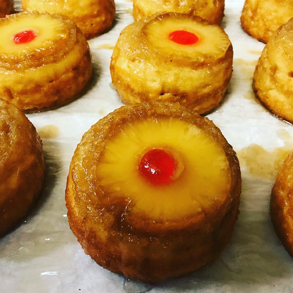 Moist individual-sized pineapple upsidedown cake.