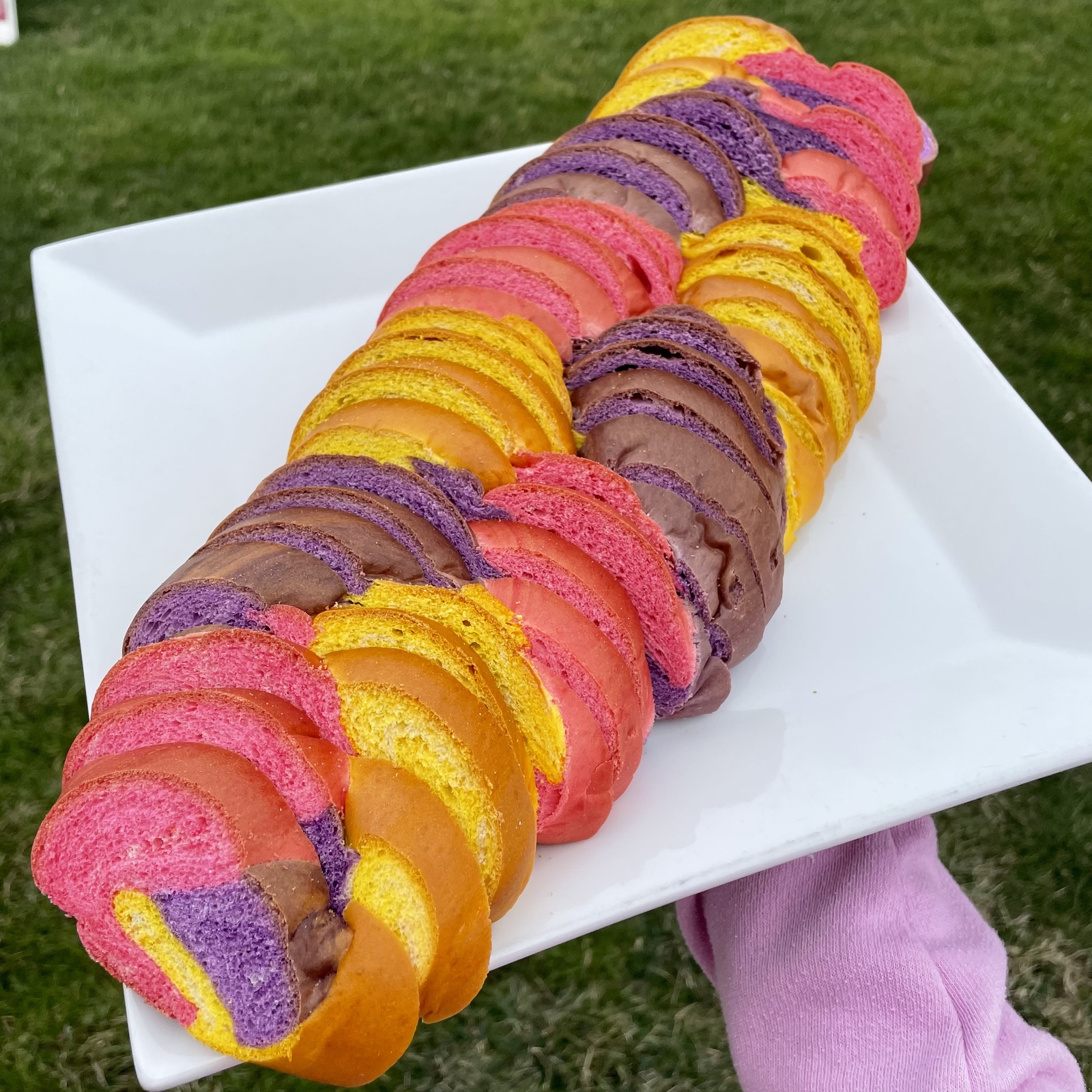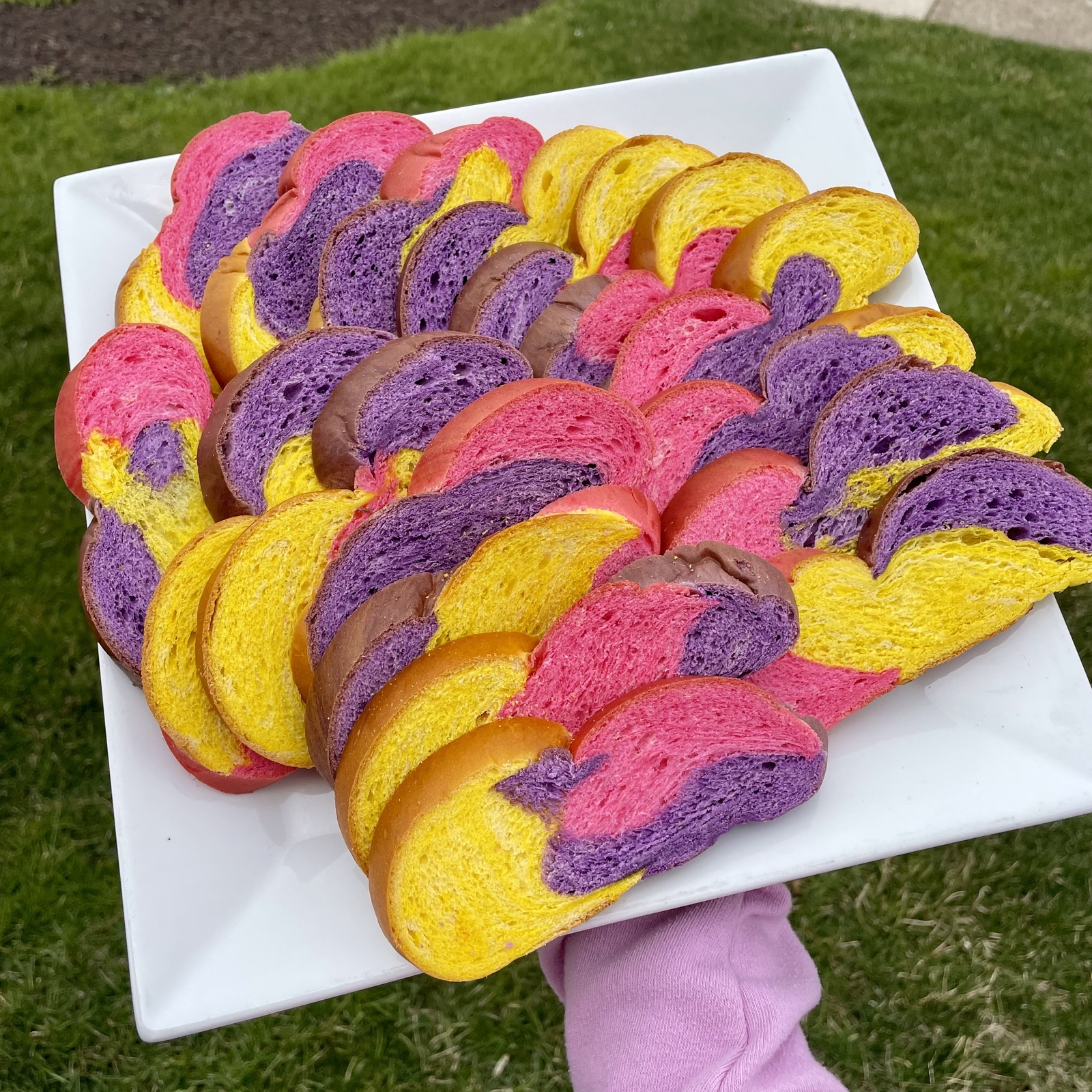 An Easter colored and braided egg bread loaf. Makes a delicious and festive addition to your Easter celebrations.