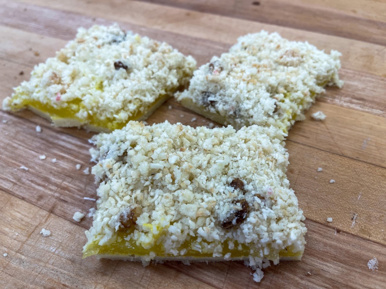 Light bar with crumbly shortbread crust and topped with delicious tangy lemon filling.