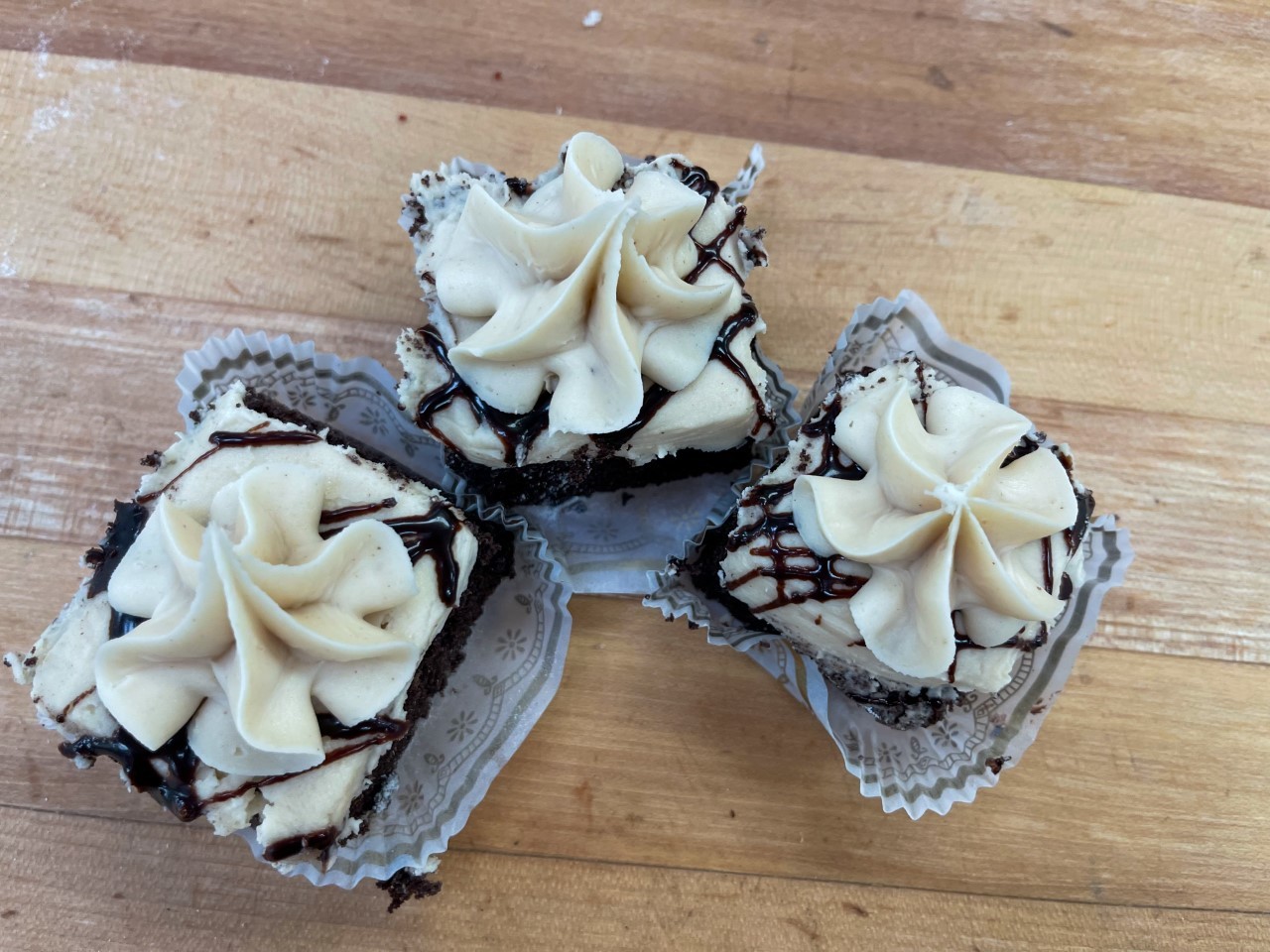 Our customer favorite combo- chocolate cake with peanut butter buttercream icing, then drizzled with chocolate ganache.