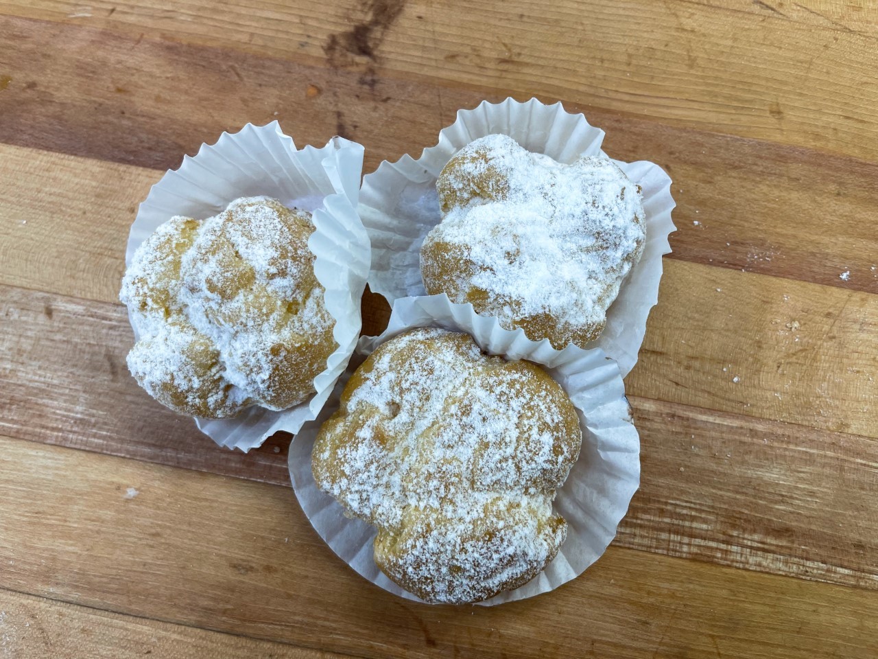 Our trademark puffed pastry filled with creamy vanilla custard and sprinkled with powdered sugar.