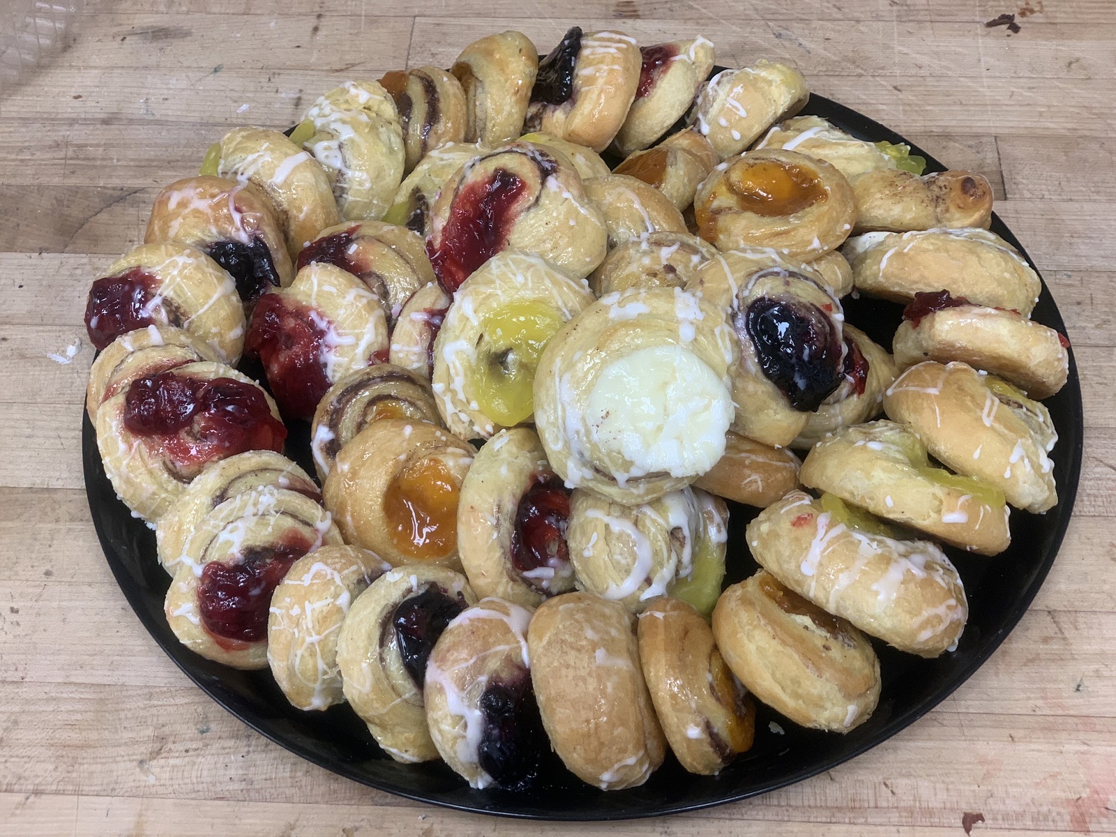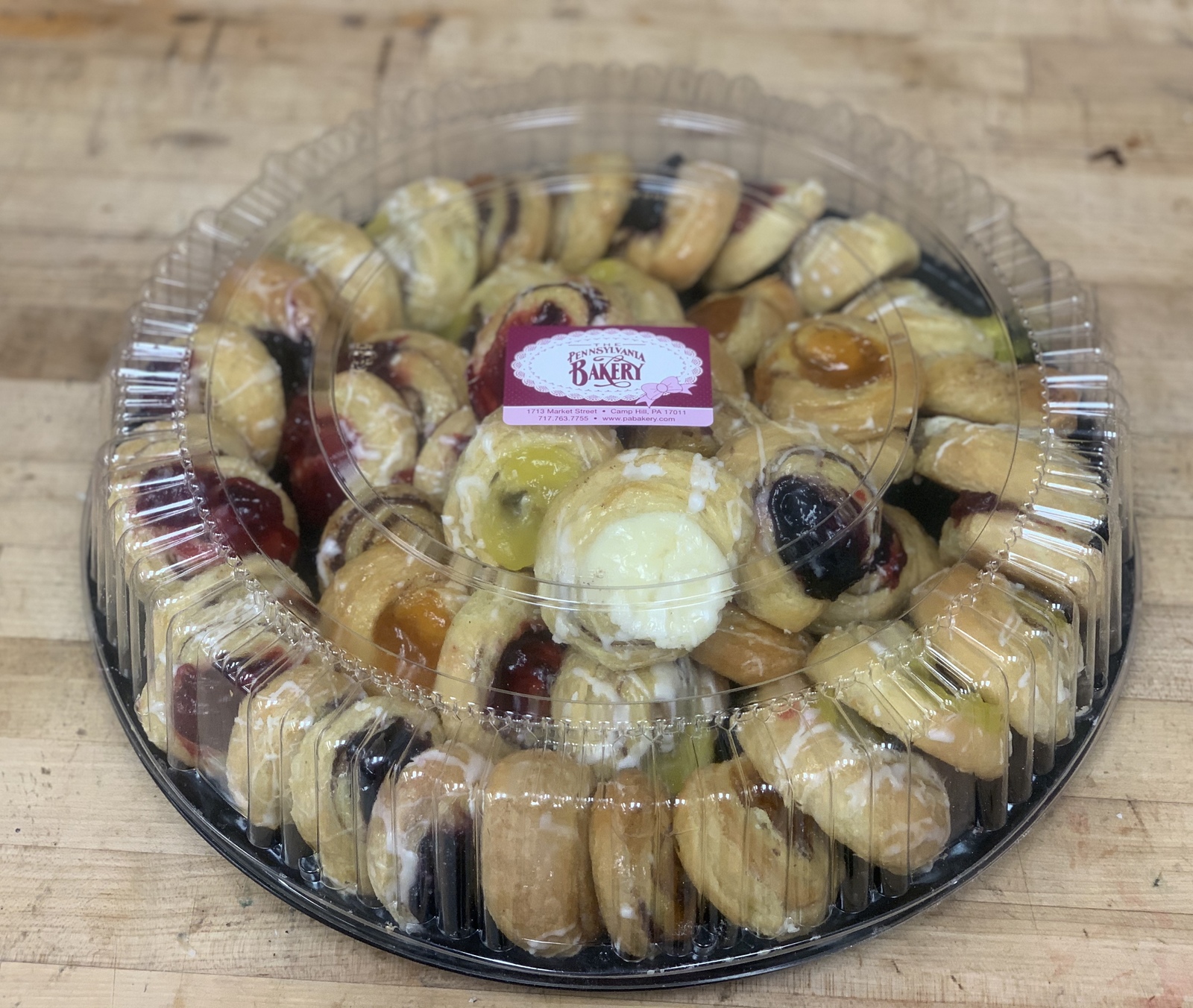 An assortment of 4 dozen of our assorted mini danish all served on a catering tray. Perfect bite-size little treats for any gathering.