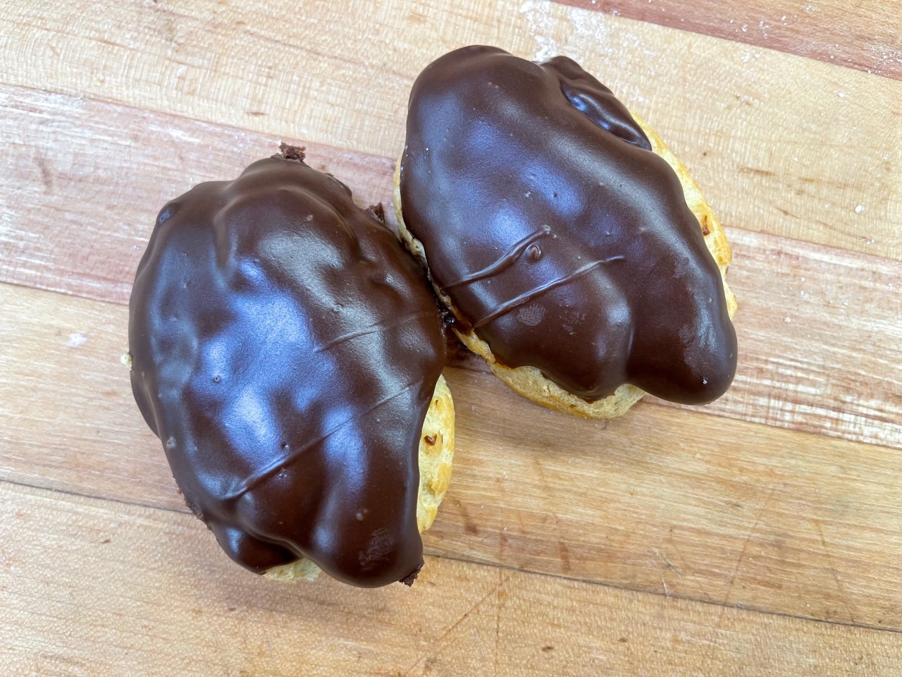 Our trademark puffed pastry filled with creamy vanilla custard and topped with chocolate icing.