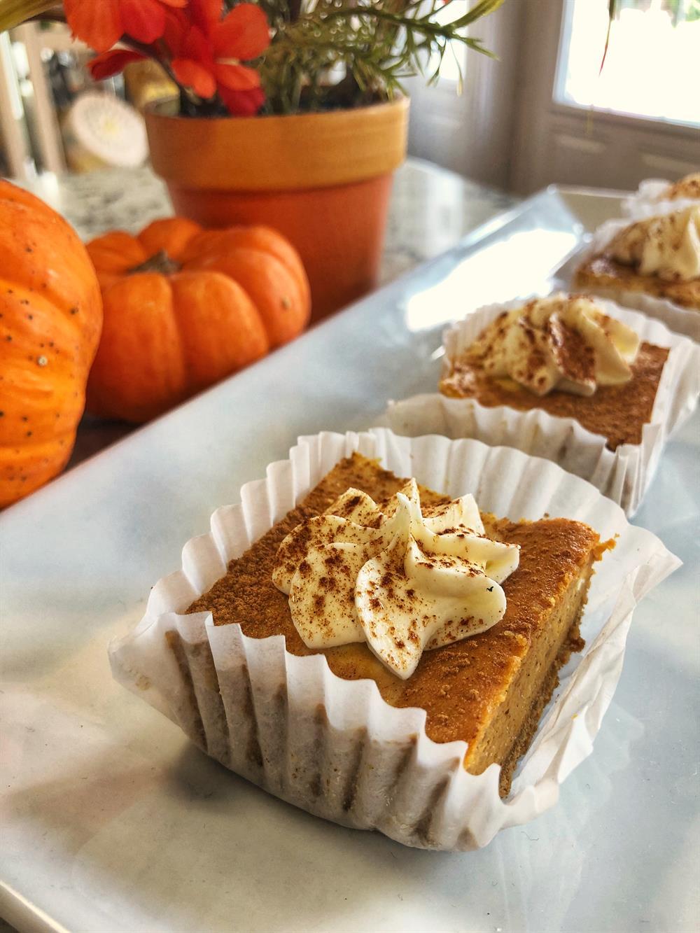 Our New York Style Cheesecake with pumpkin swirled throughout. Available during the fall season.