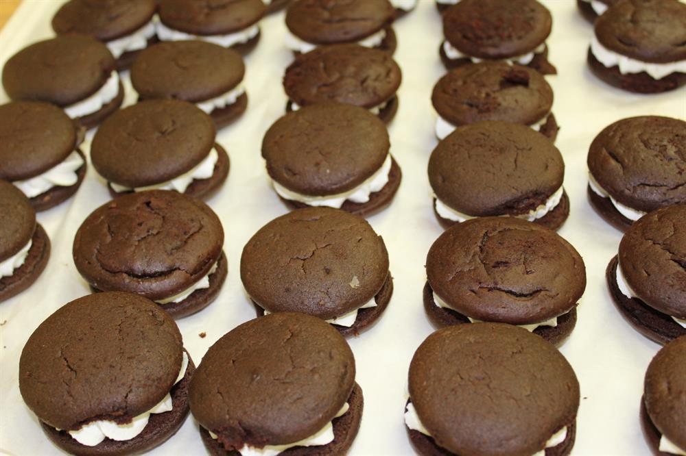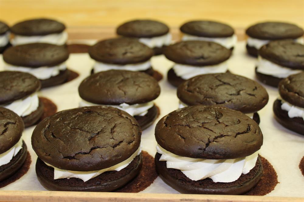 A bite-size (2 inches in diameter) version of our signature Whoopie Pie. Our delicious sandwich cookie, featuring two pieces of our moist chocolate cake with a white buttercream filling.