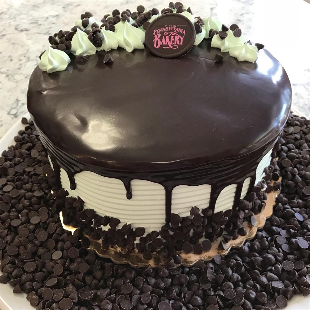Layers of chocolate cake, filled and iced with a mint mousse, garnished with poured ganache, and chocolate chips. An ode to one of our favorite ice cream flavors. Serves 6-8.