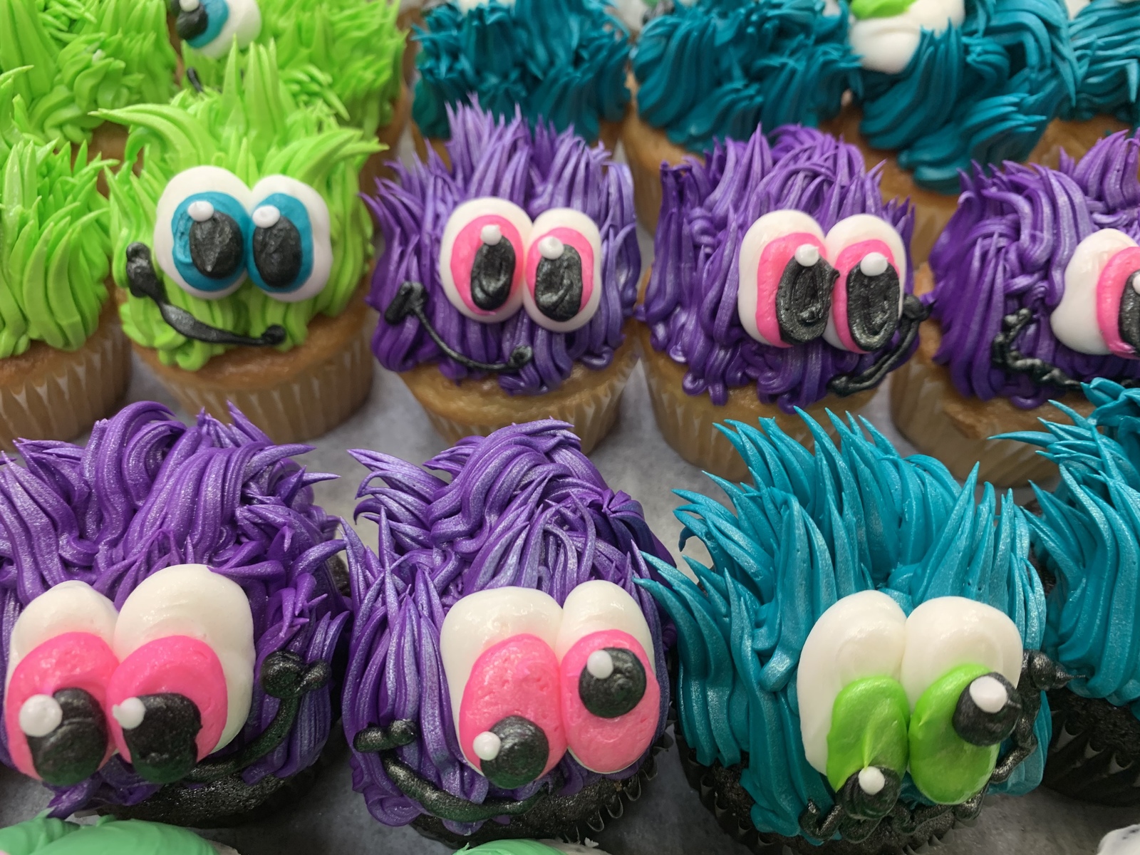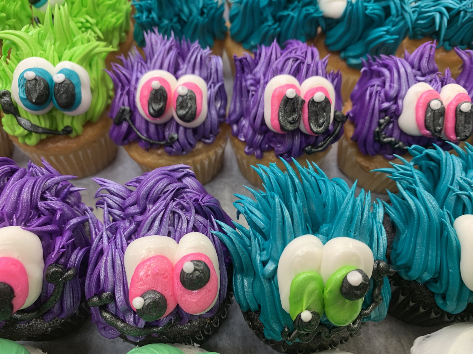 Our signature decorated monster cupcakes. Available with option of yellow or chocolate cake & each one is hand-decorated with buttercream icing.