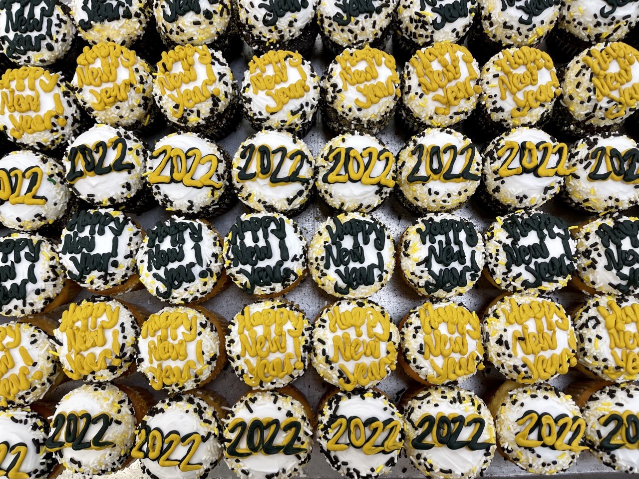 1 Dozen of our New Year's Message Decorated Cupcakes. Dozen will include 6 chocolate & 6 yellow, unless otherwise specified.