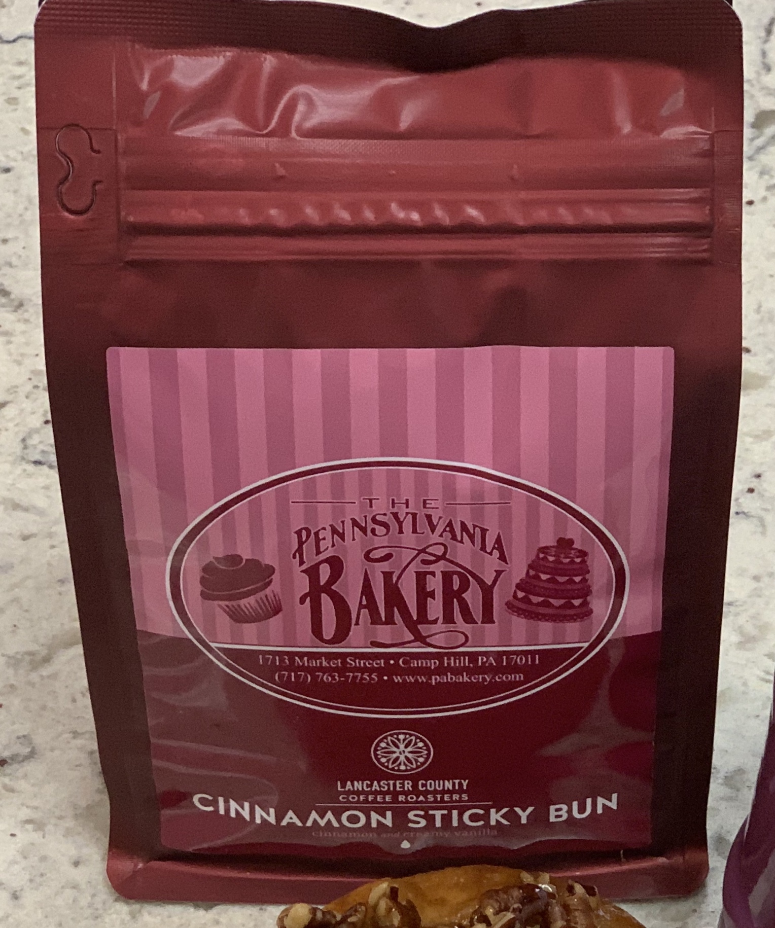 Our own Cinnamon Sticky Bun flavored whole bean coffee blend. Take the flavors of our bakery home with you in your morning cup of coffee. Made by Lancaster County Coffee Roasters.