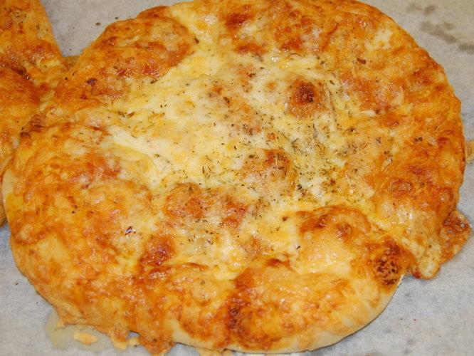 A flat bread with mozzarella cheese and fresh herbs.