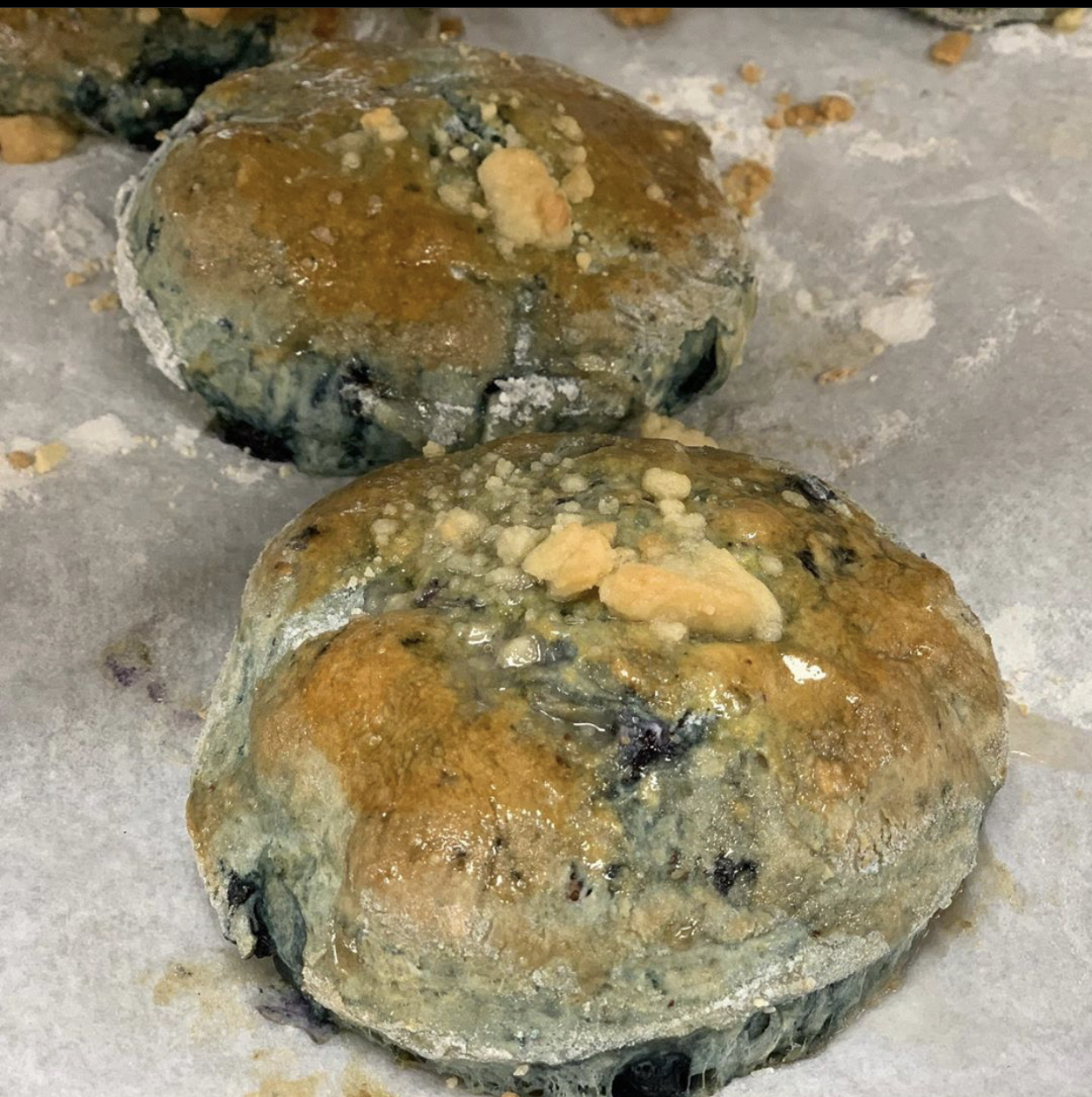 A dozen of our assorted scone flavors, including: plain, blueberry, chocolate chip, cranberry, lemon poppyseed, strawberry cream cheese, and other seasonal flavors.
