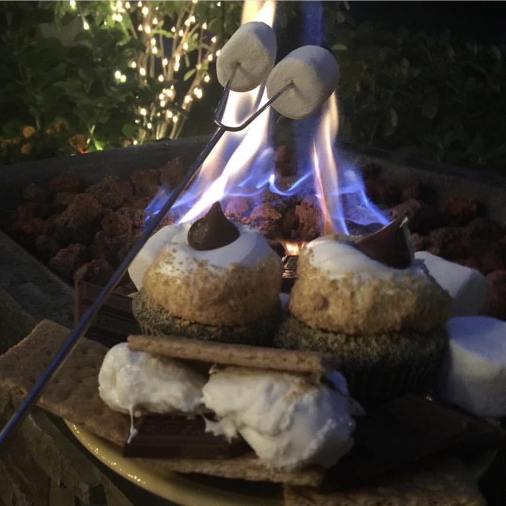 A delicious chocolate cake topped with a marshmallow mousse icing, rolled in graham cracker crumbs and topped with a Hershey's chocolate piece.
