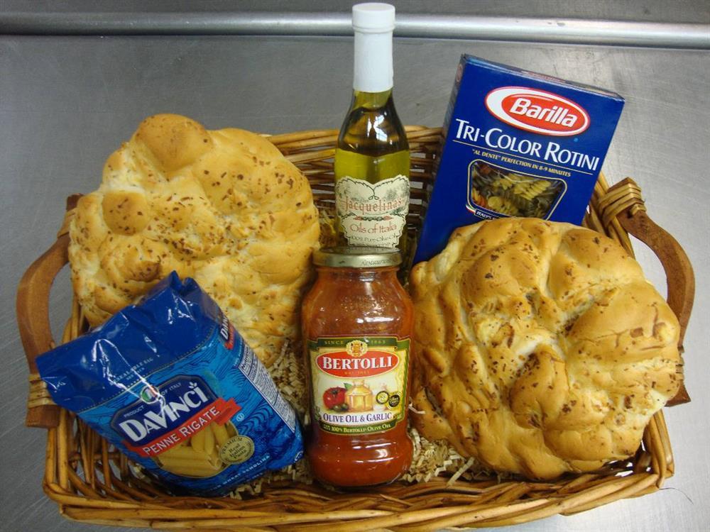 This dinner sampler is a thoughtful gift for anyone and includes all ingredients to make a perfect Italian meal. The Spaghetti Bread gift package includes: 2 loaves of our signature Spaghetti Bread, 2 bags/boxes of fancy pasta noodles, 1 jar pasta sauce, 1 bottle of bread oil. Arranged in a basket and wrapped with cellophane and ribbons.