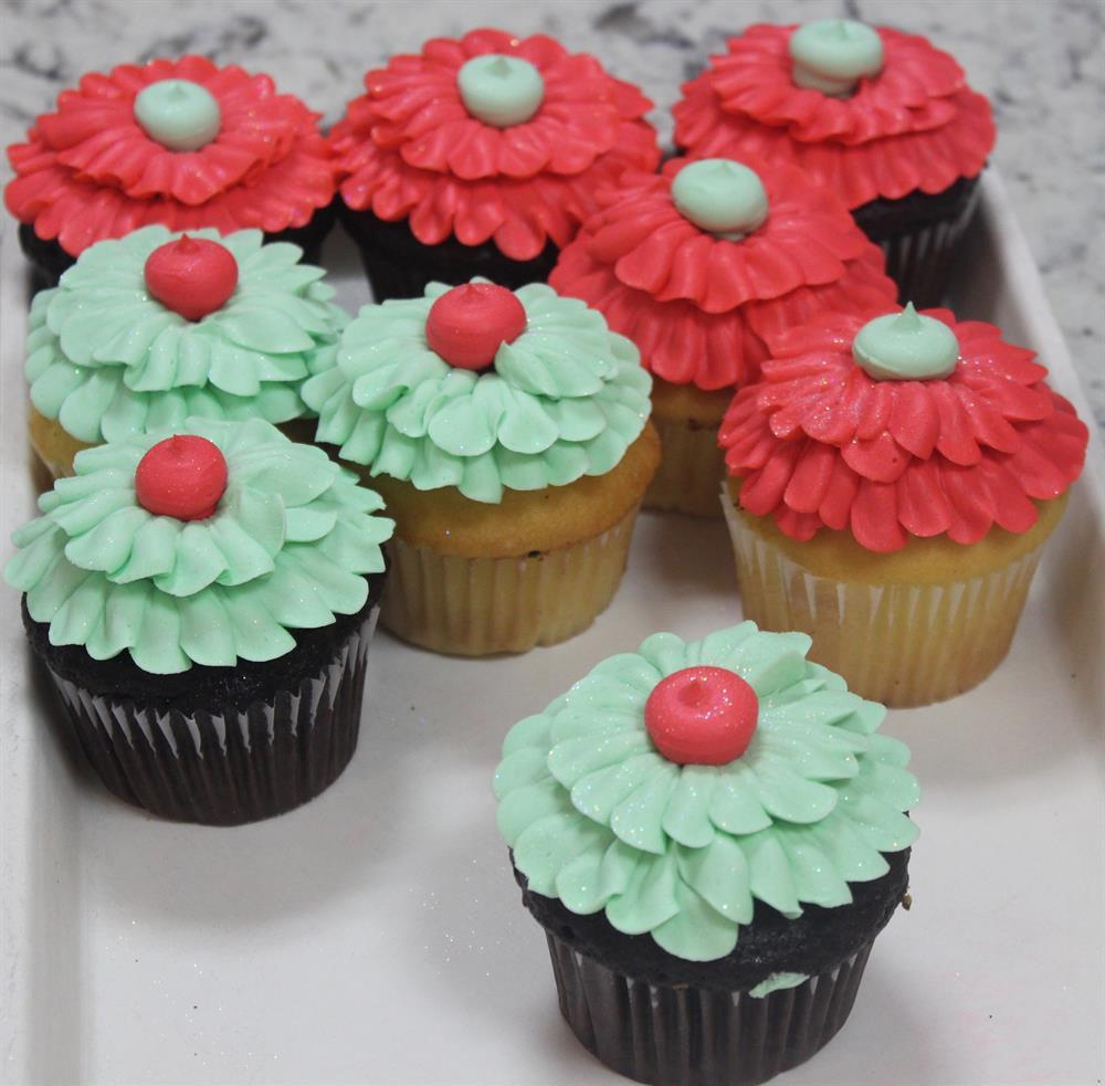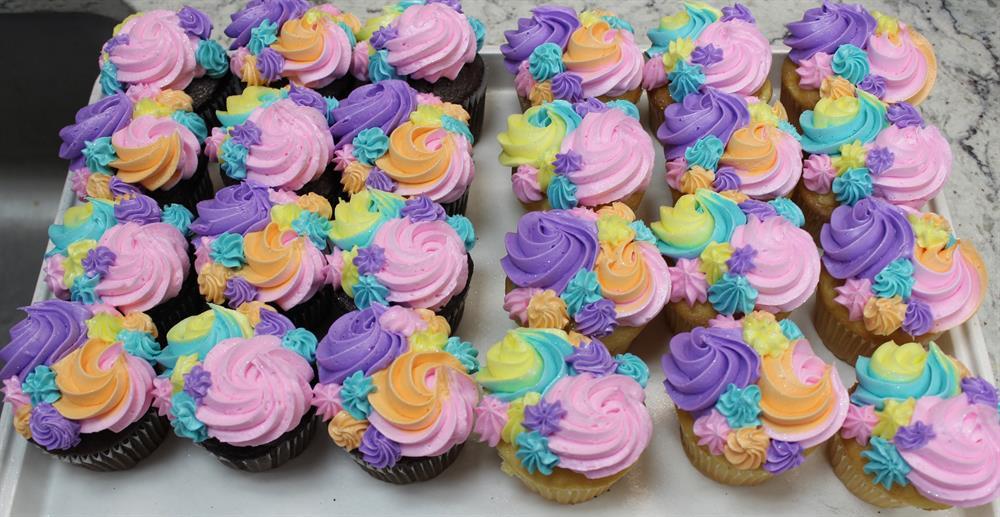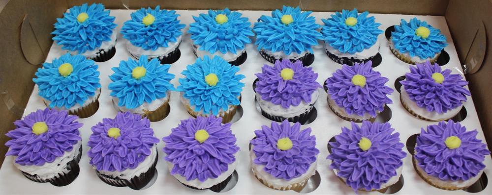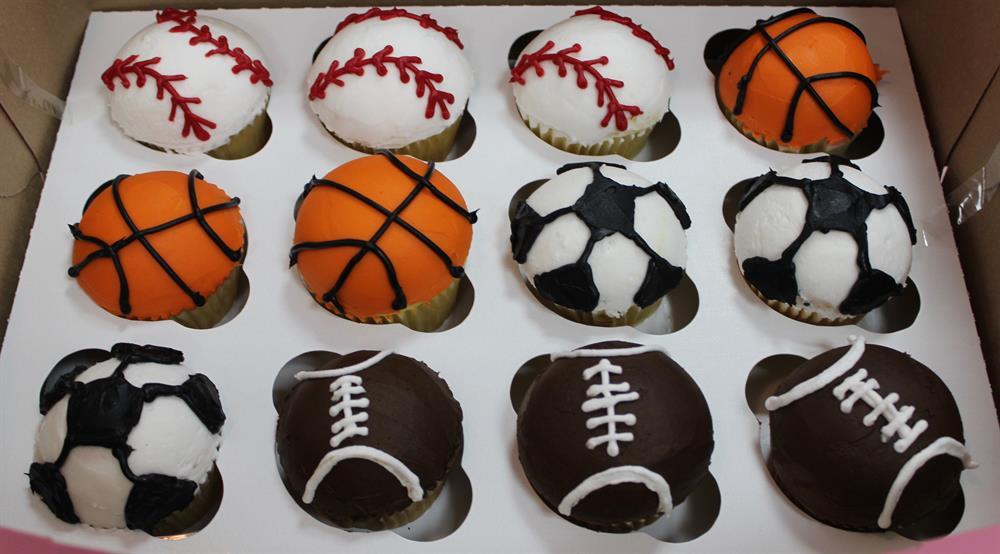 Available in chocolate or yellow cake. Sports Ball decorations hand-piped on each cupcake.