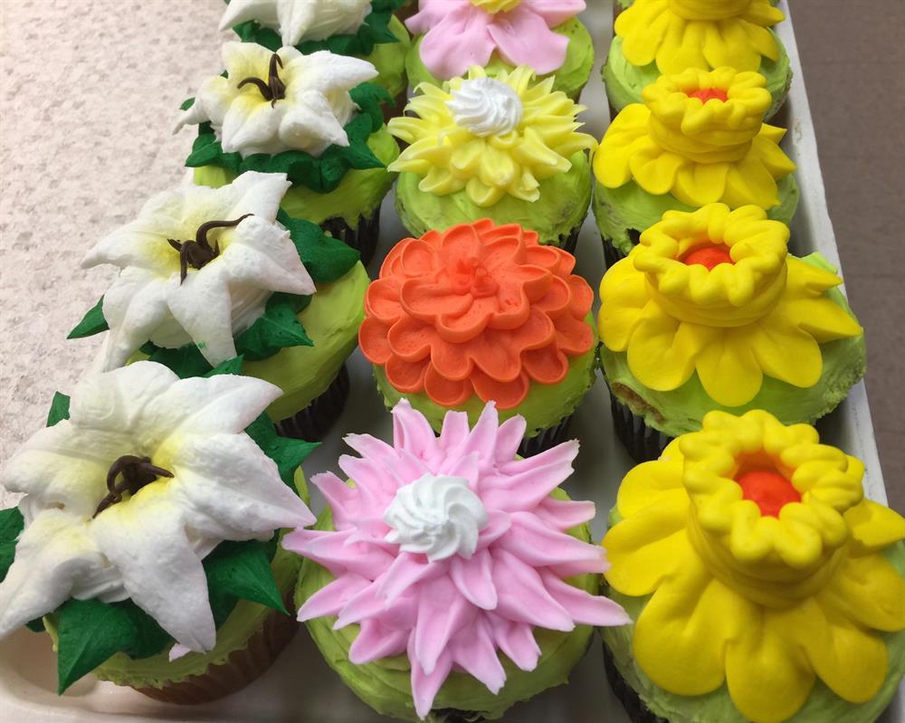 Available in yellow or chocolate cake. All decorations in buttercream.