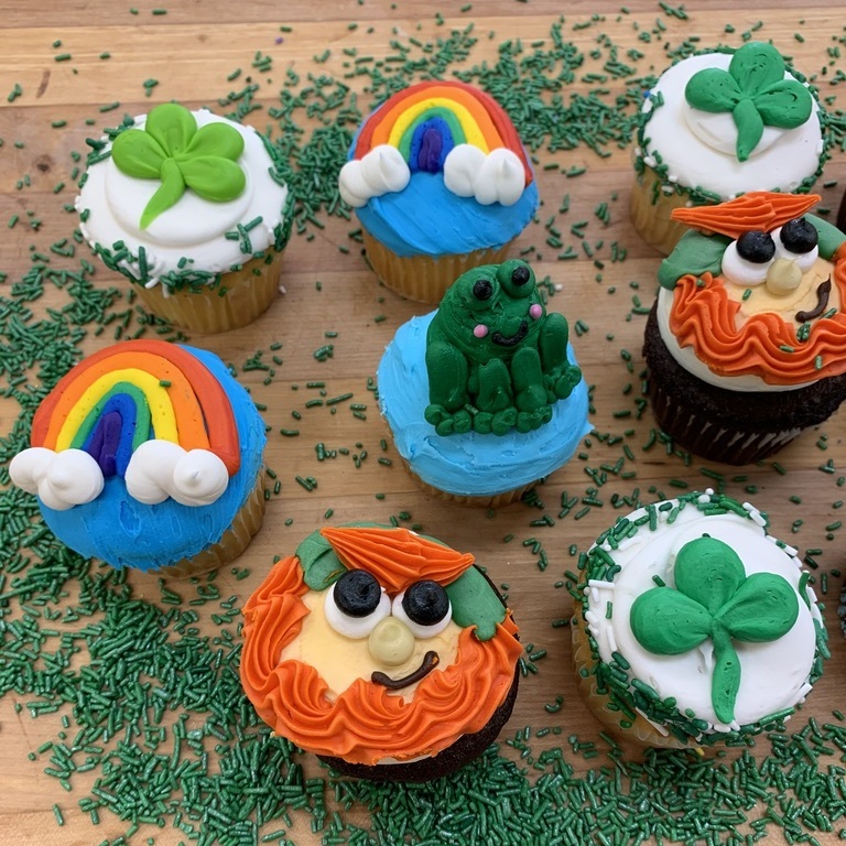 A half dozen of our St. Patty's Day Assorted Decorated Cupcakes. Available in chocolate or vanilla cake.