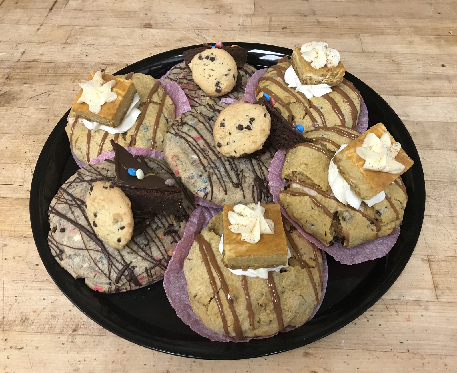 Seven of our huge stuffed cookies all served on a catering tray. Stuffed Cookies will include only an assortment of current seasonal flavor selections.