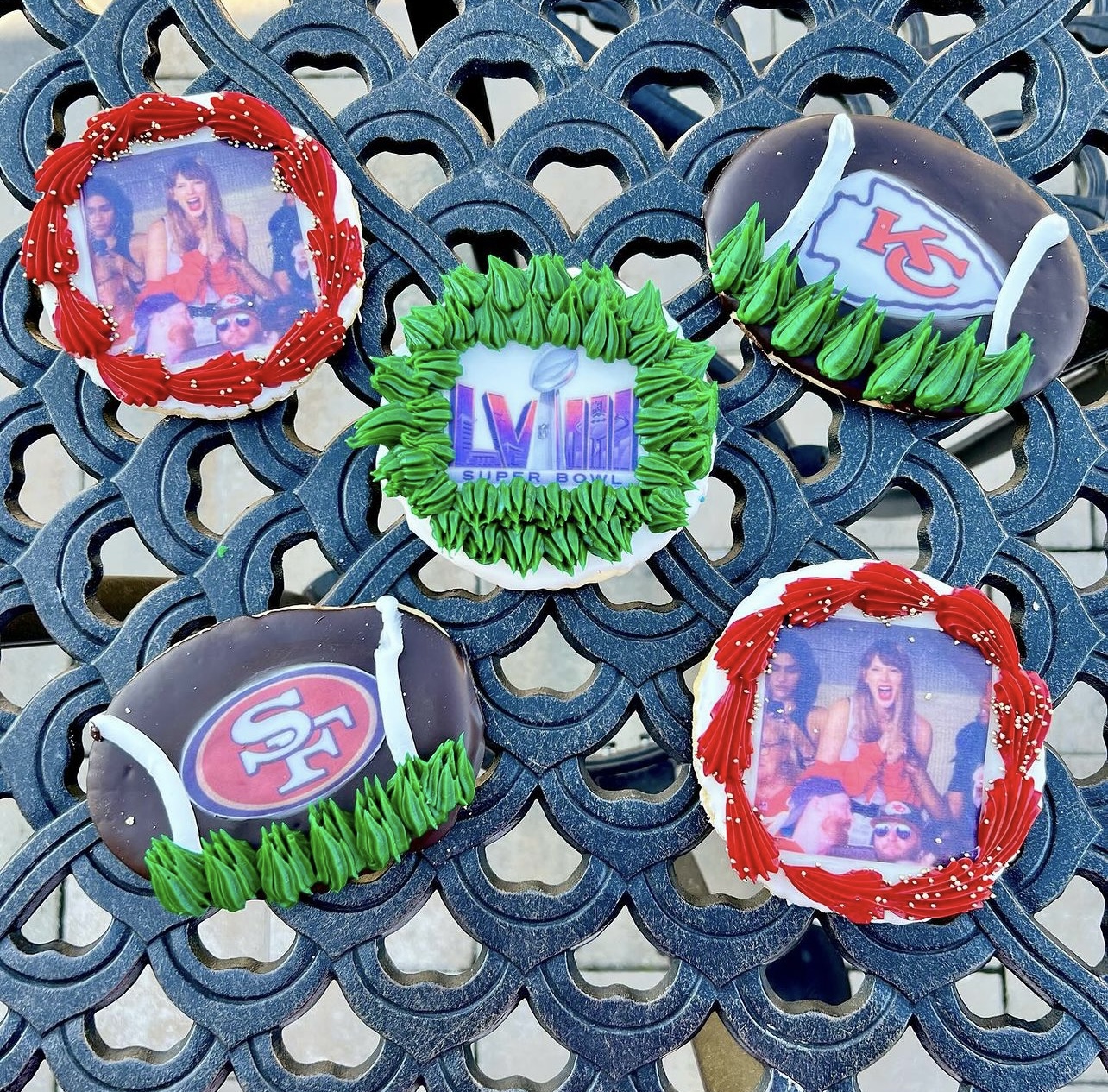 A football shaped decorated cookie, dipped in chocolate and decorated with an edible picture of either the KC chiefs or SF. Please specify which team you want.