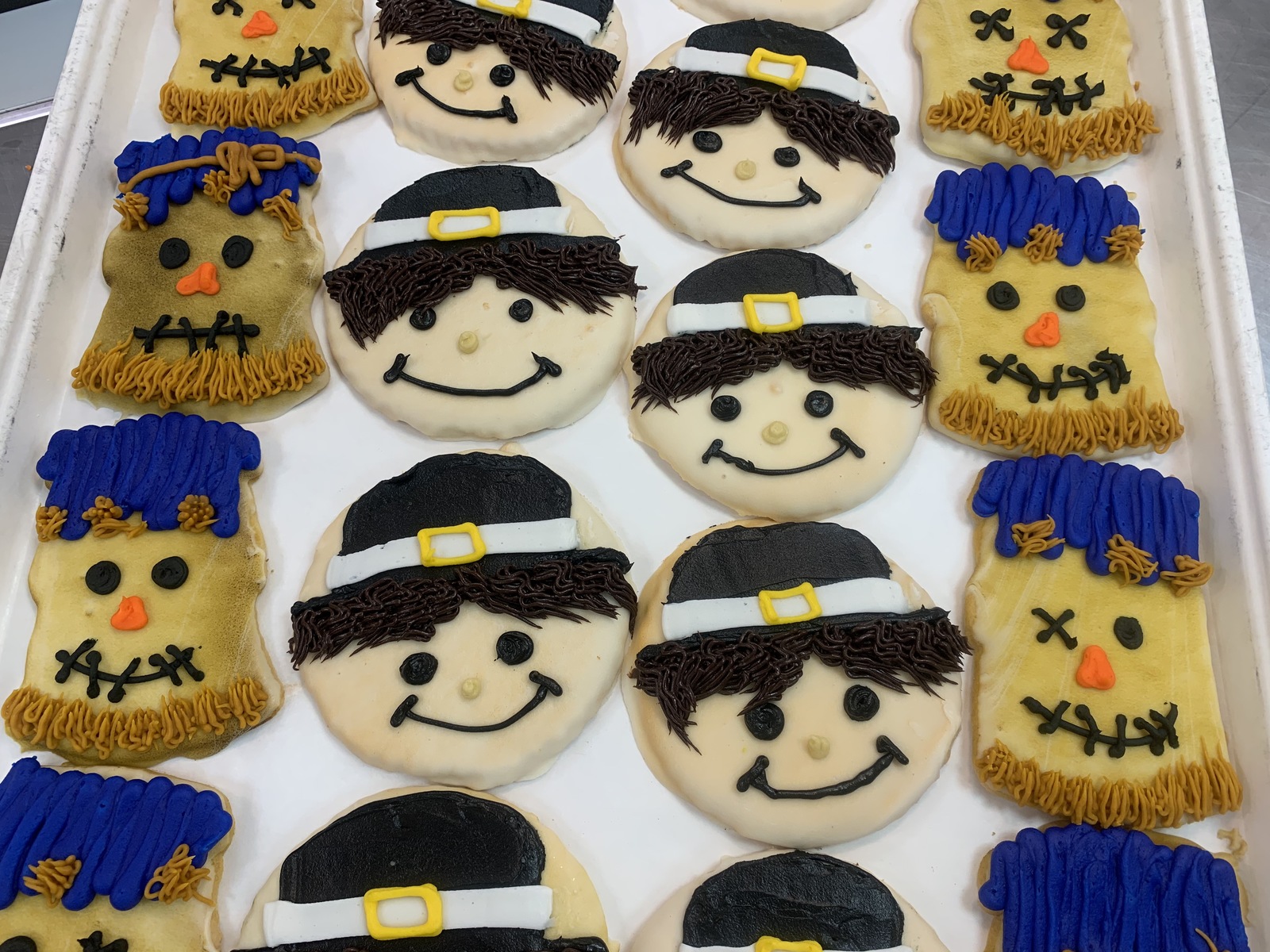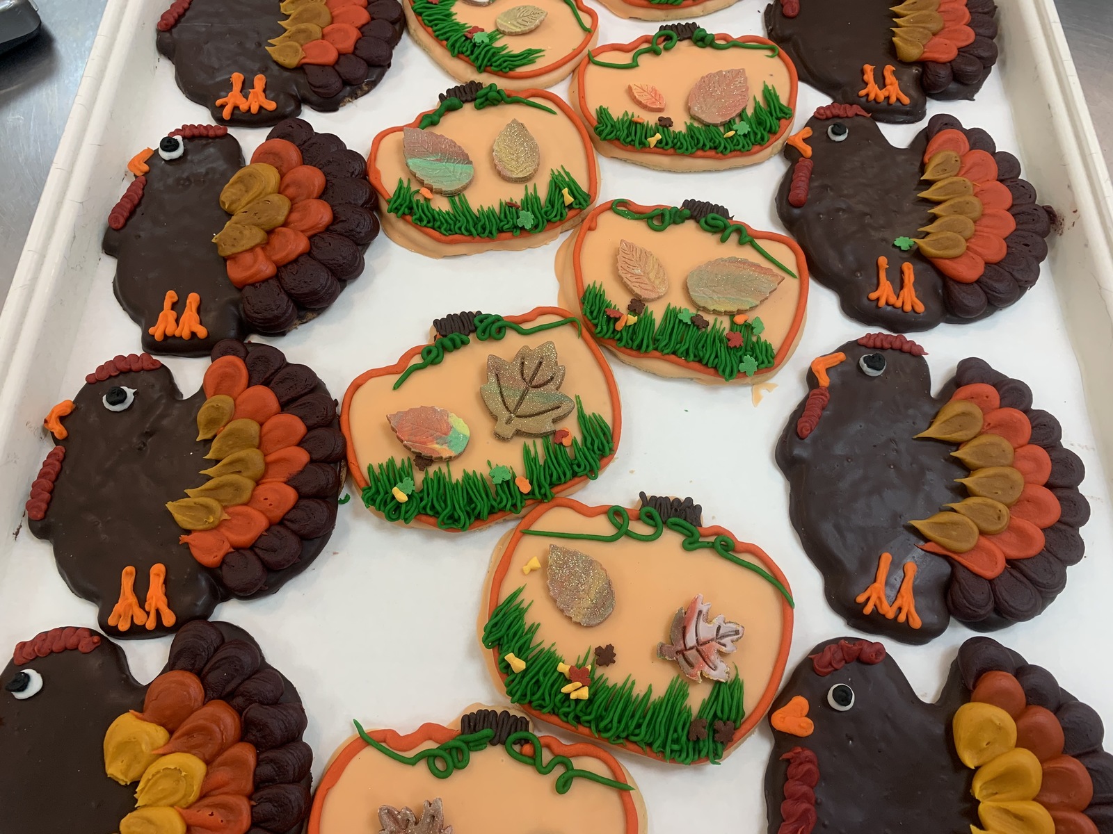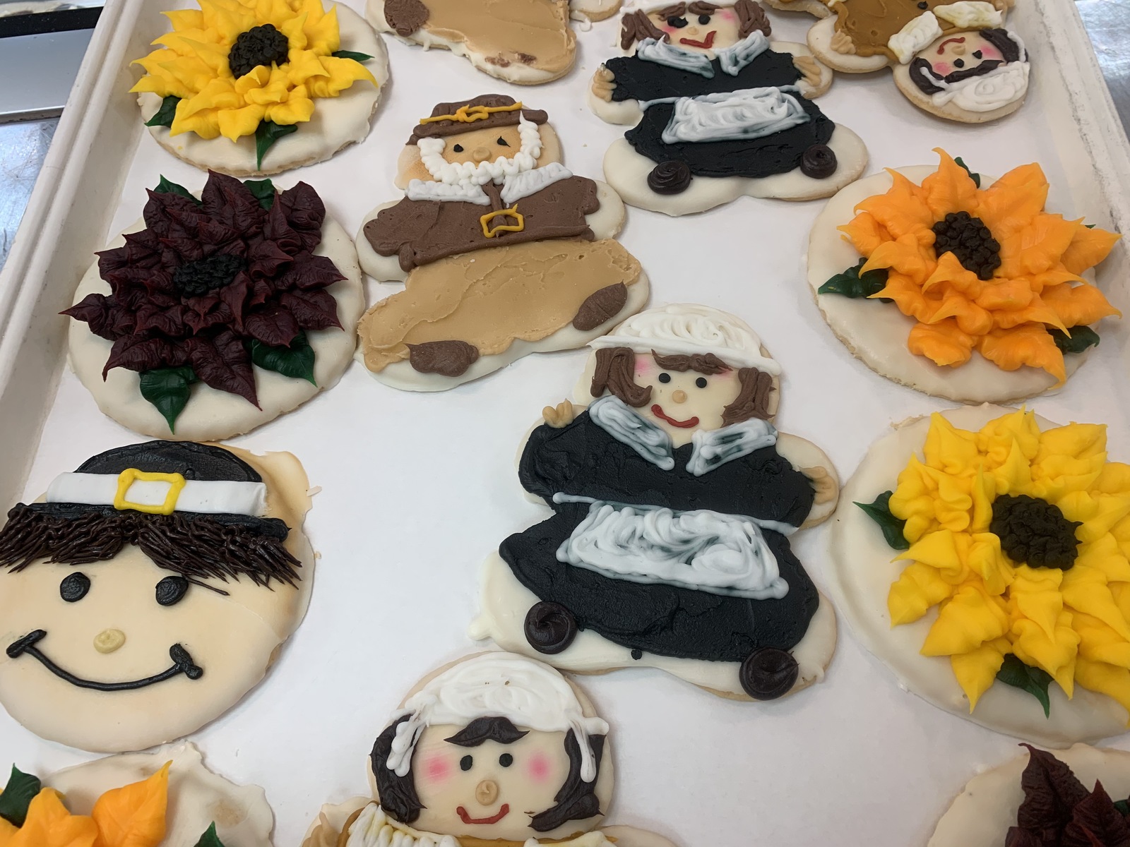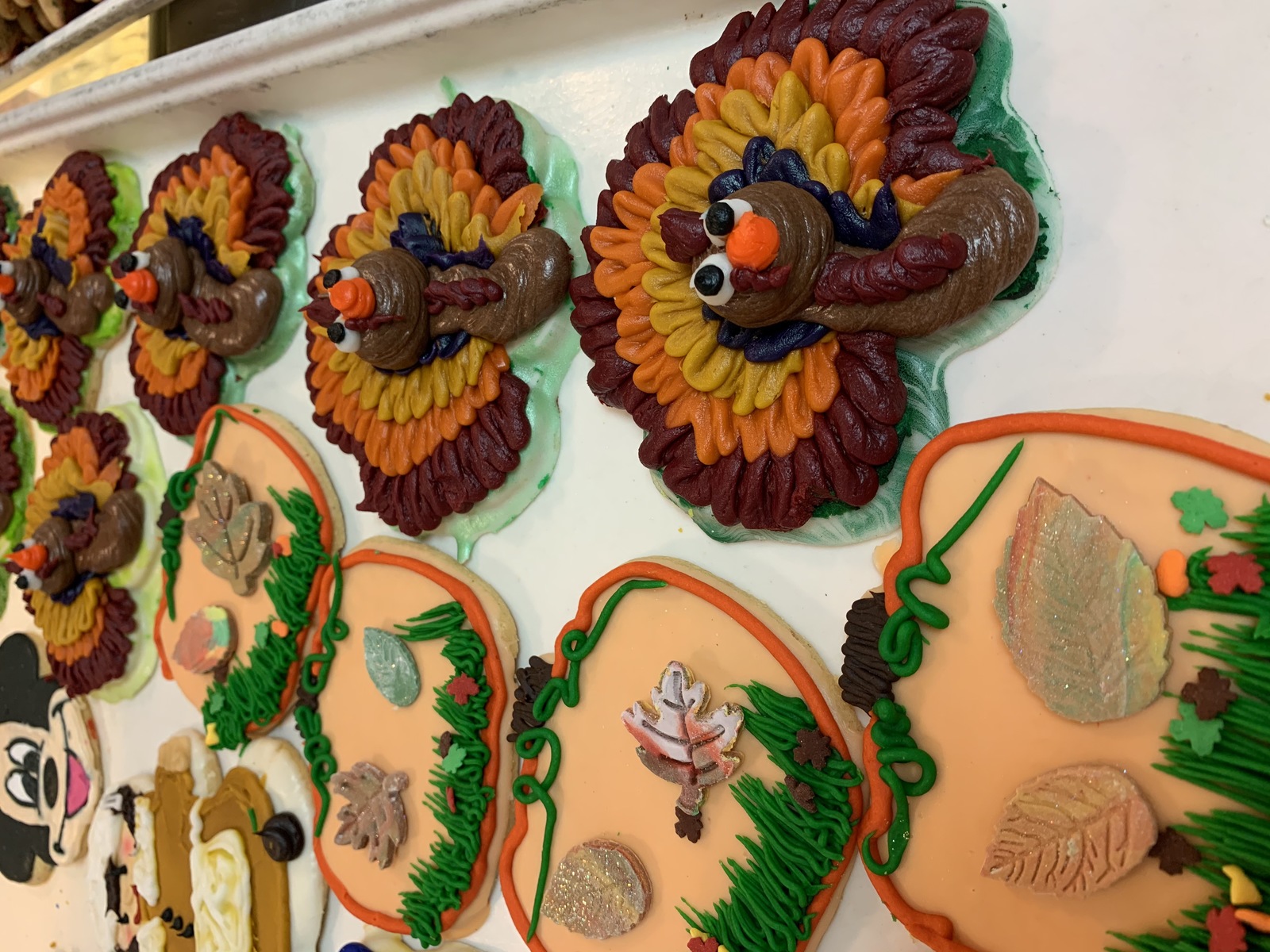 An assortment of our Thanksgiving-themed sugar cookies, topped with white chocolate, and hand-decorated with buttercream icing. Comes with 12 Assorted Cookies.