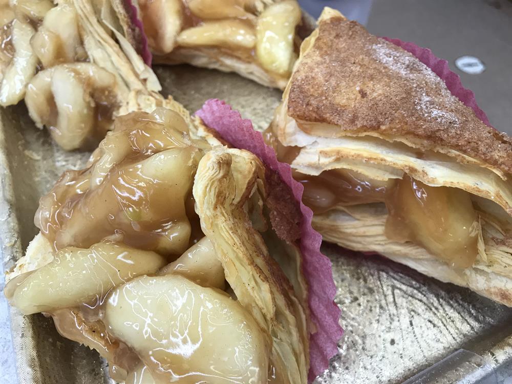Flaky turnover pastry dough, with large amount of apple filling.