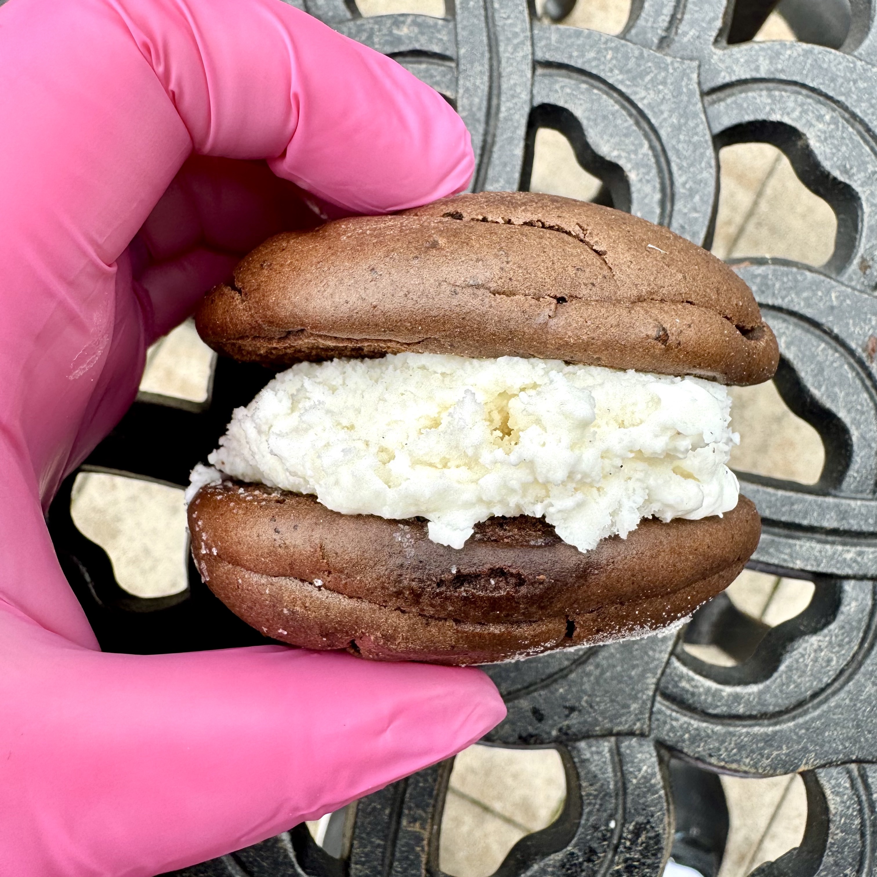 Our famous Whoopie Pie cake sandwich, stuffed with a generous scoop of Fox Meadows Madagascar Vanilla Ice Cream.