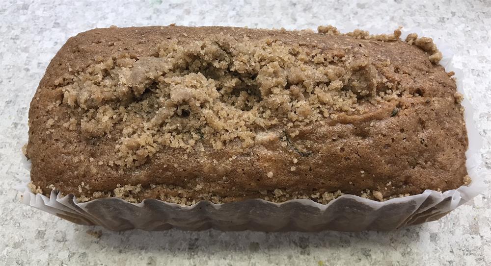 A moist quick bread made with fresh zucchini, grown in our family's garden. Only available in the late summer, July to September.